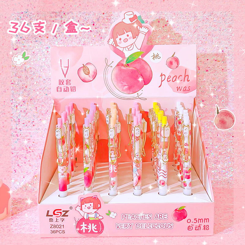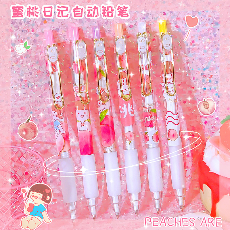 사랑 단어 8021 복숭아 일기 자동 연필 0.5mm 만화 귀여운 활동 연필 초등학교 문구스토어 가기
