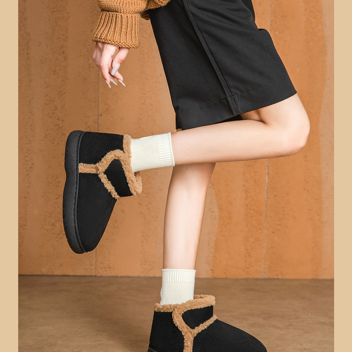 두꺼운 밑창 스노우 부츠 여성의 겨울 2024 새로운 기모 두꺼운 북동쪽면 신발 따뜻한 미끄럼 면화 여성용 겉옷