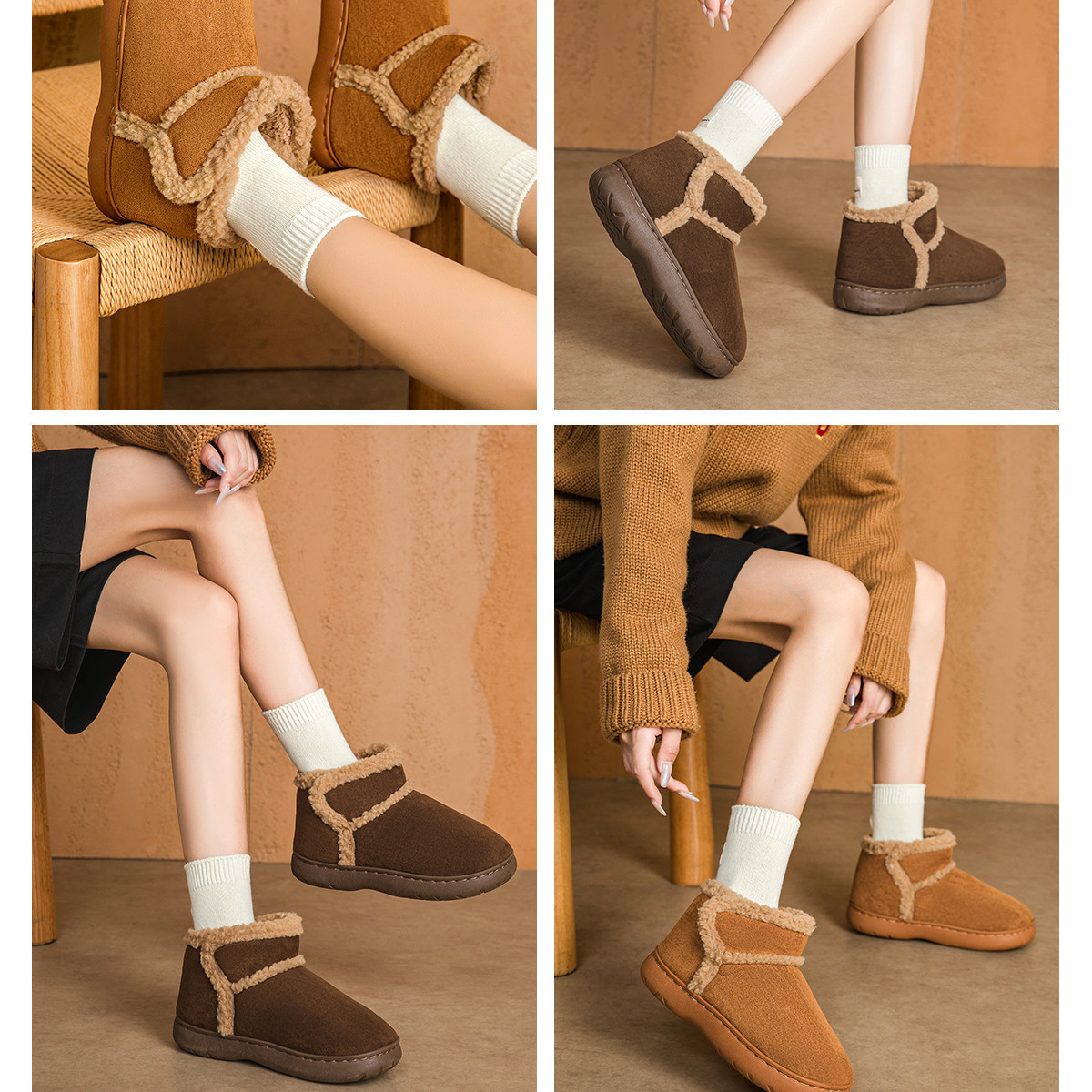 두꺼운 밑창 스노우 부츠 여성의 겨울 2024 새로운 기모 두꺼운 북동쪽면 신발 따뜻한 미끄럼 면화 여성용 겉옷스토어 가기