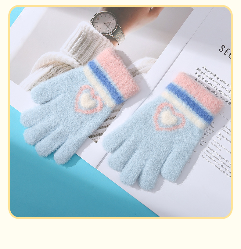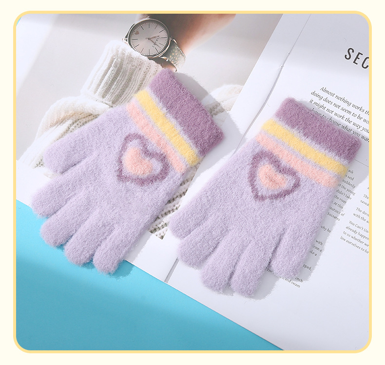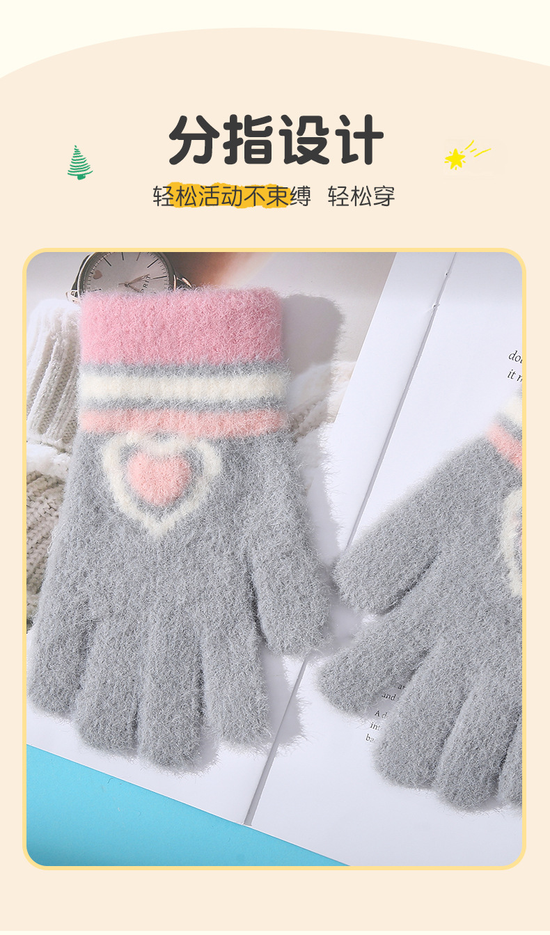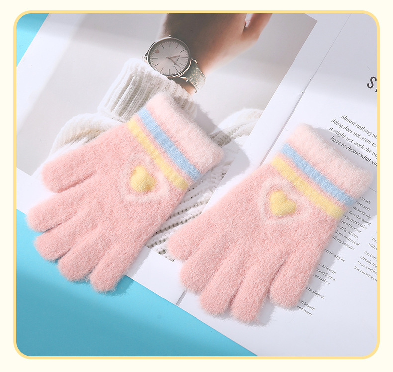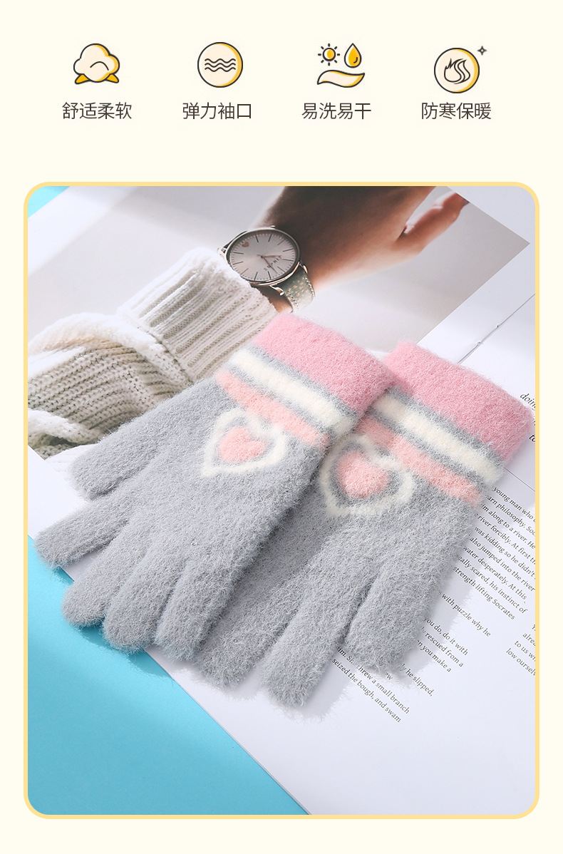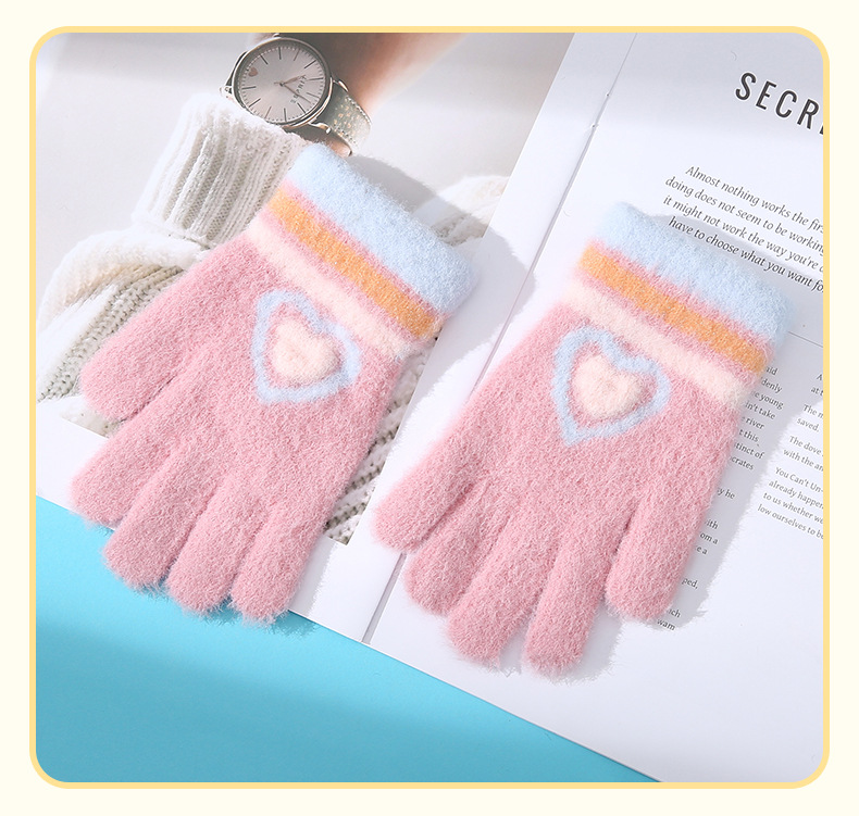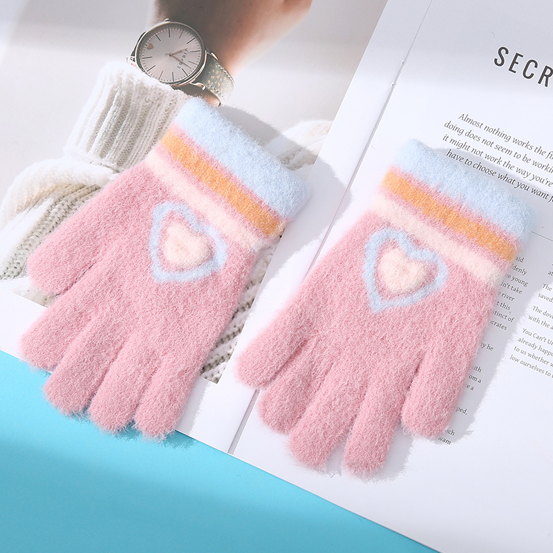 새로운 사랑 줄무늬 소녀 따뜻한 장갑 겨울 방한 두꺼운 어린이 니트 사이클링 눈 쓰기 다섯 손가락스토어 가기