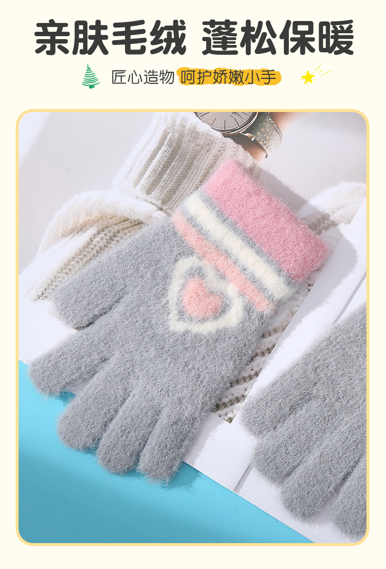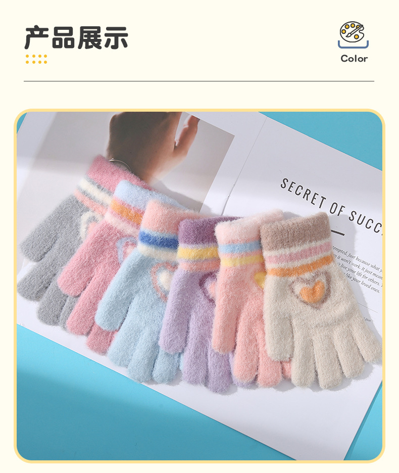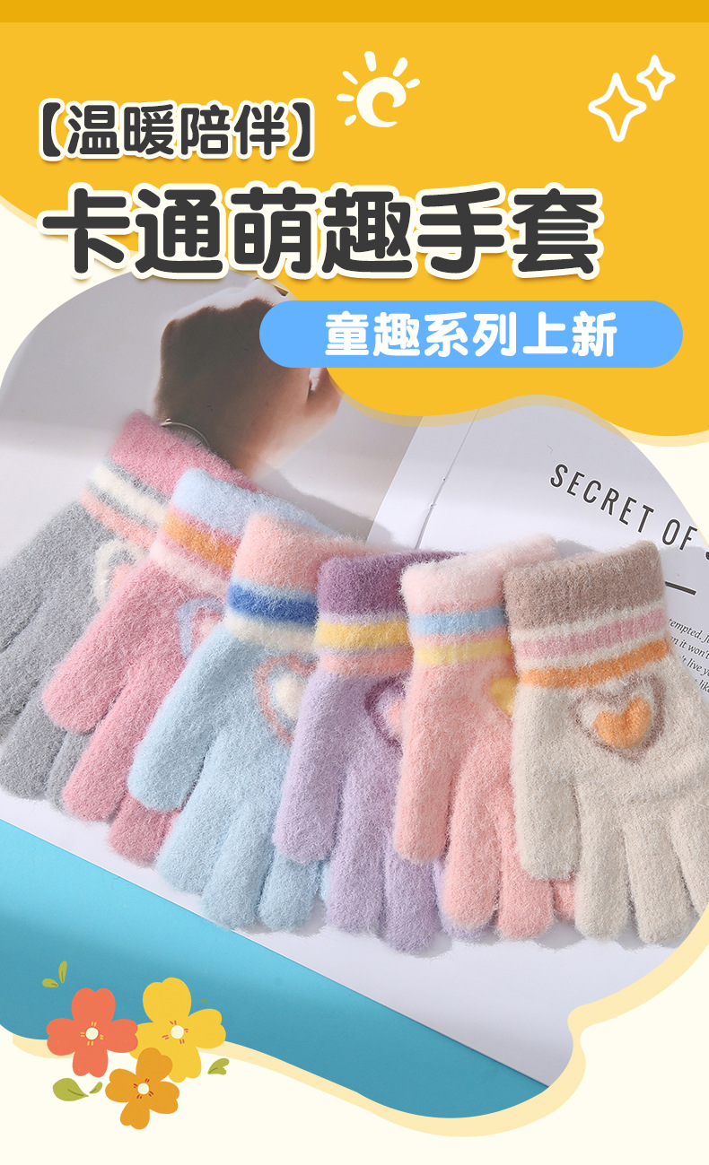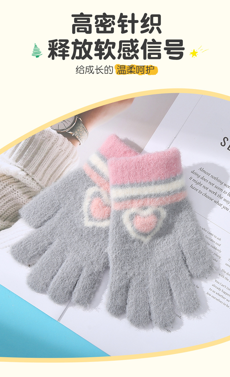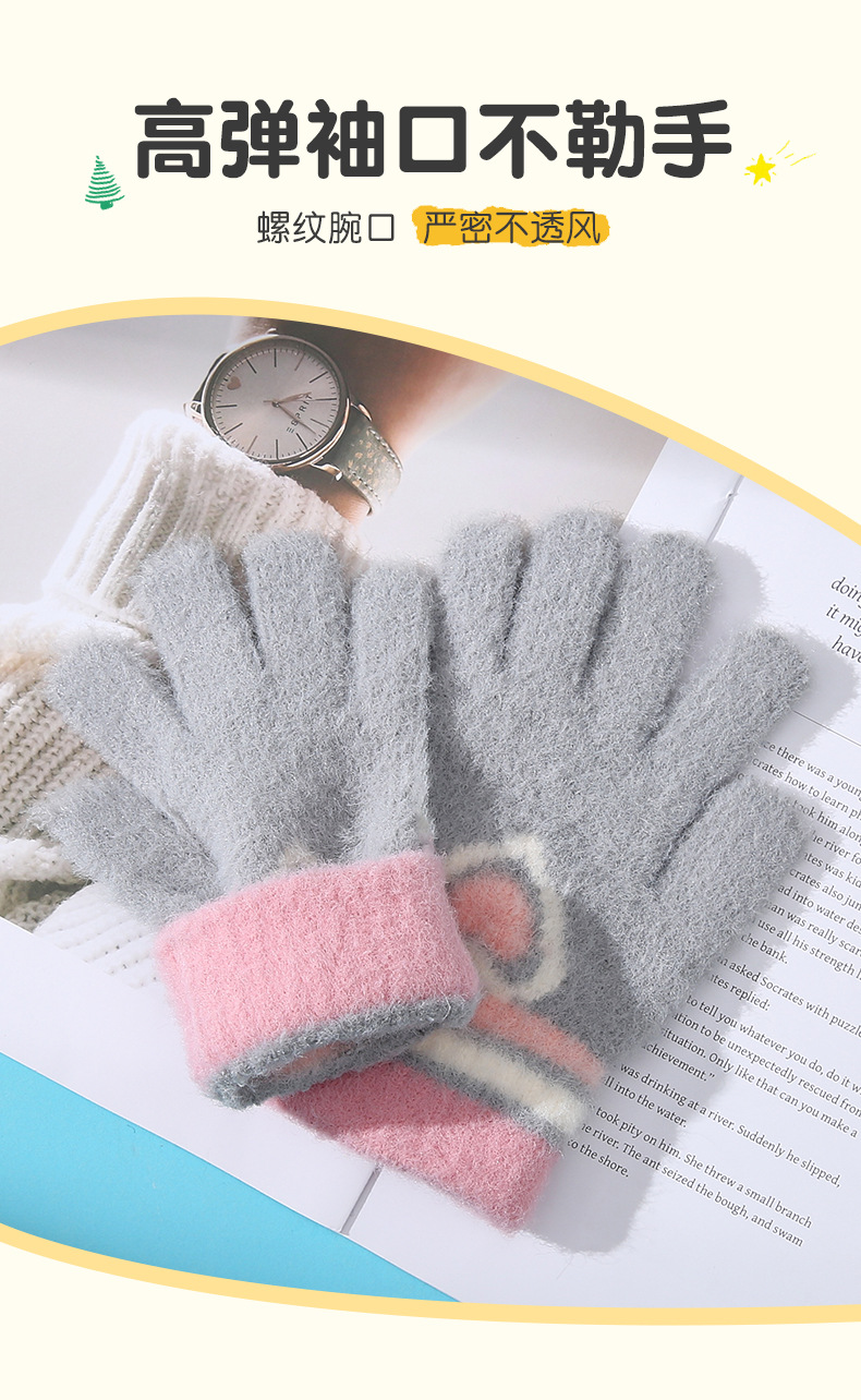 새로운 사랑 줄무늬 소녀 따뜻한 장갑 겨울 방한 두꺼운 어린이 니트 사이클링 눈 쓰기 다섯 손가락스토어 가기
