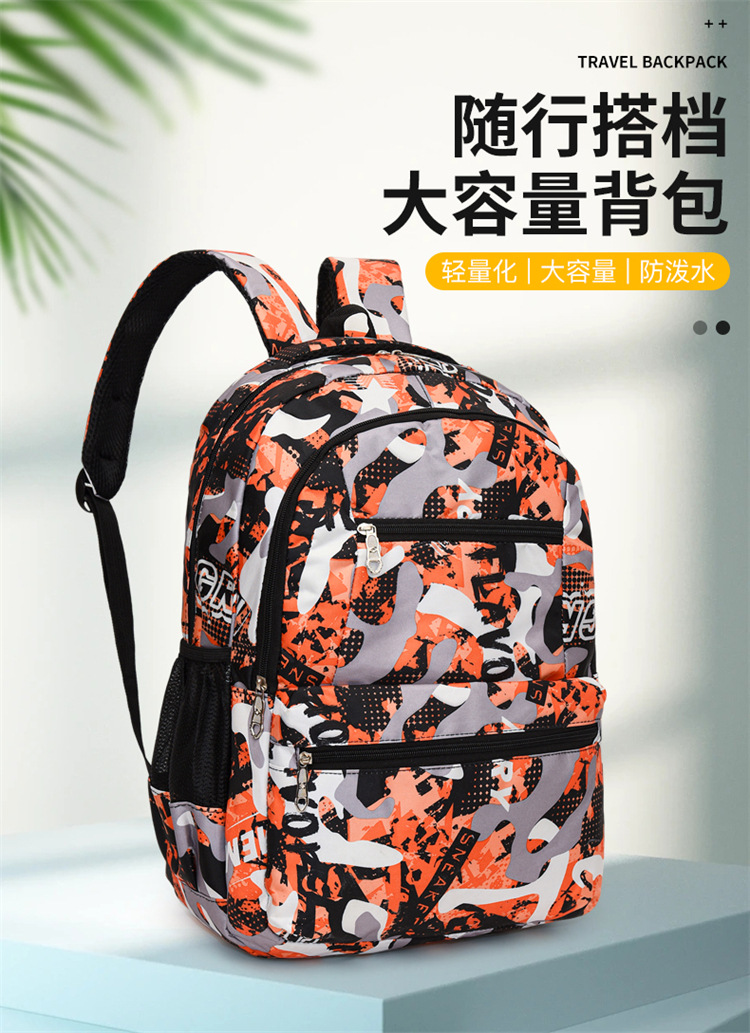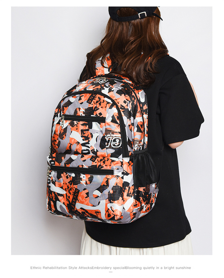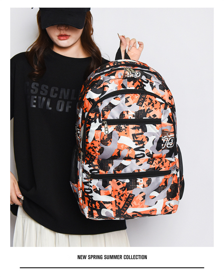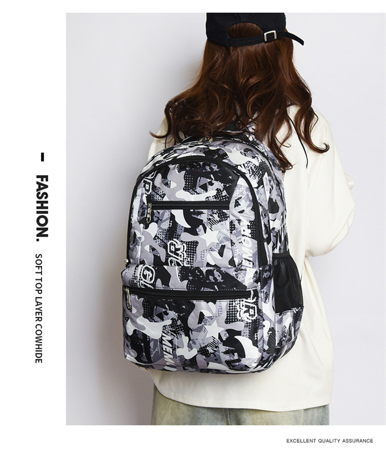 대용량 배낭 2024 새로운 고등학교 학생 대용량 Schoolbag 캐주얼 위장 인쇄 배낭