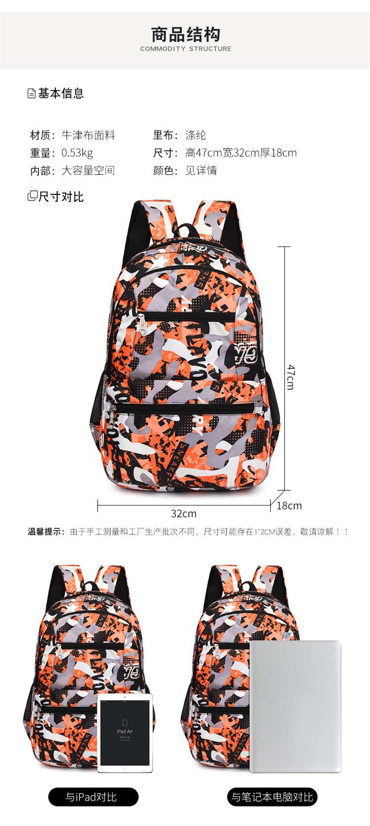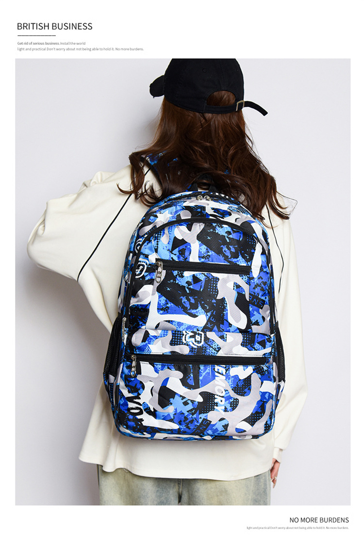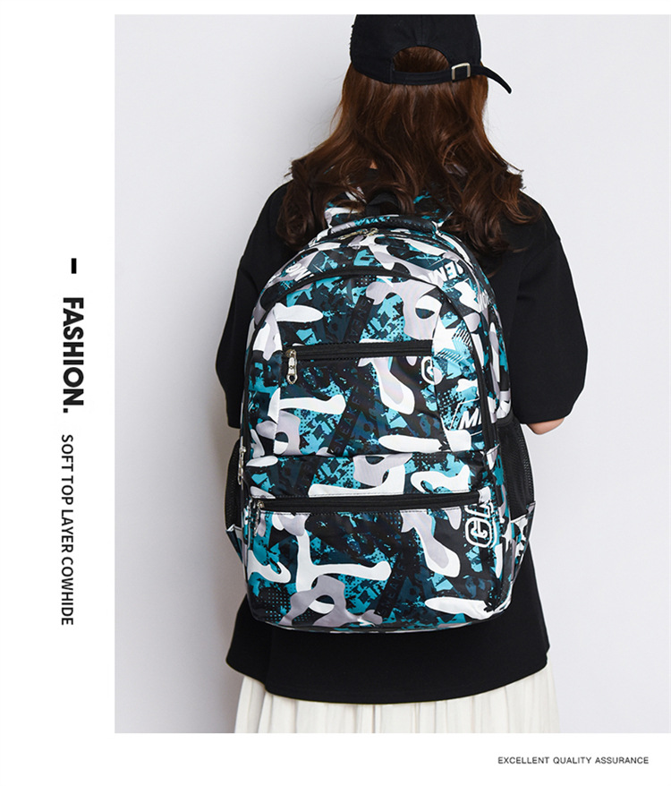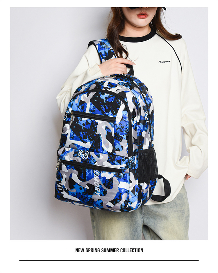 대용량 배낭 2024 새로운 고등학교 학생 대용량 Schoolbag 캐주얼 위장 인쇄 배낭스토어 가기