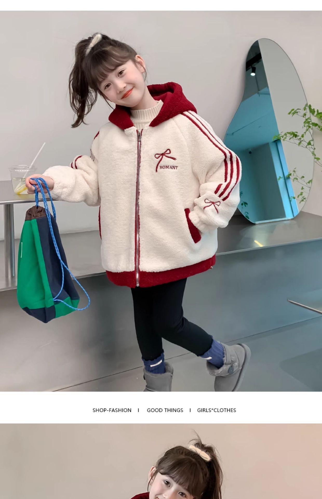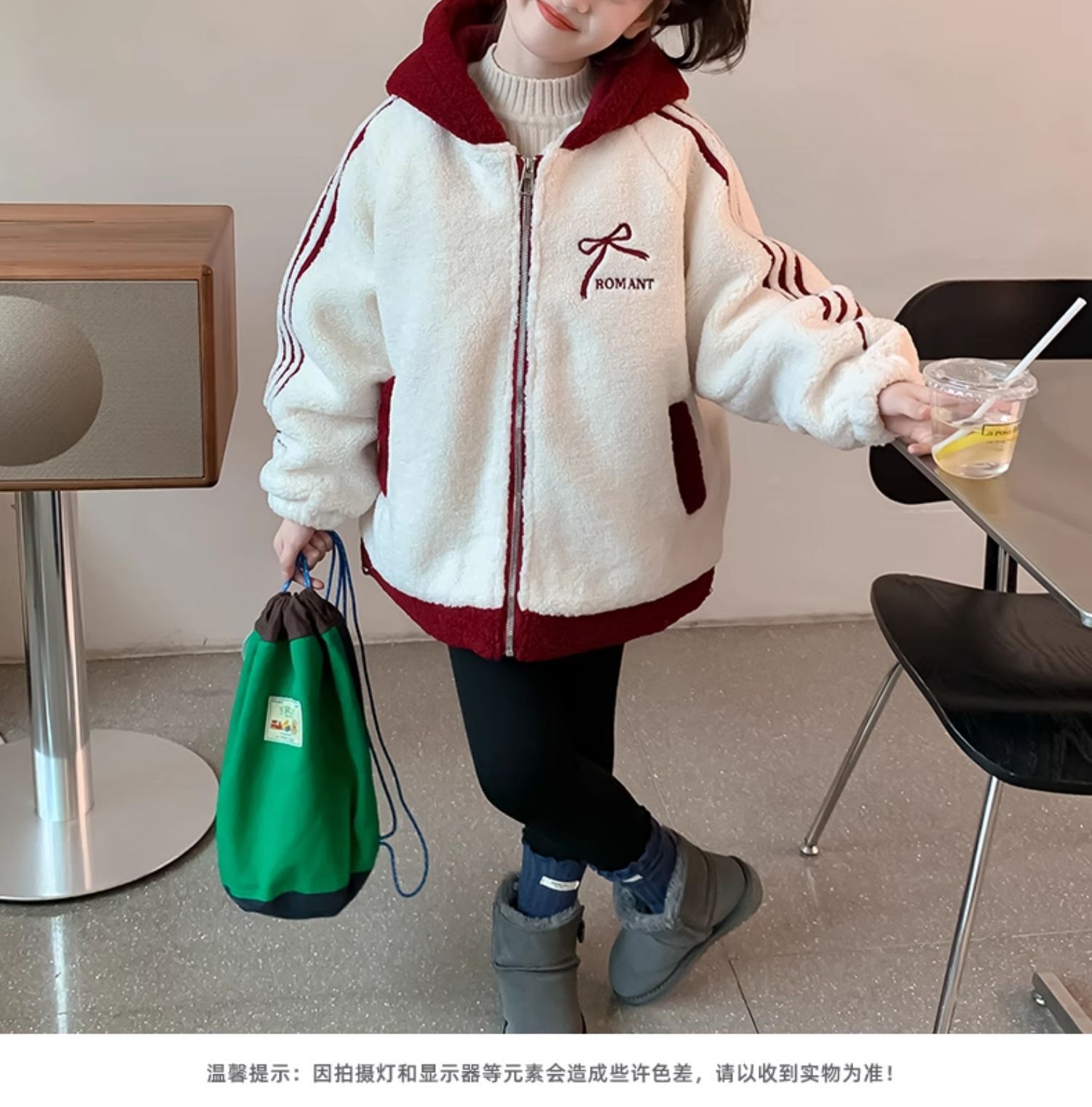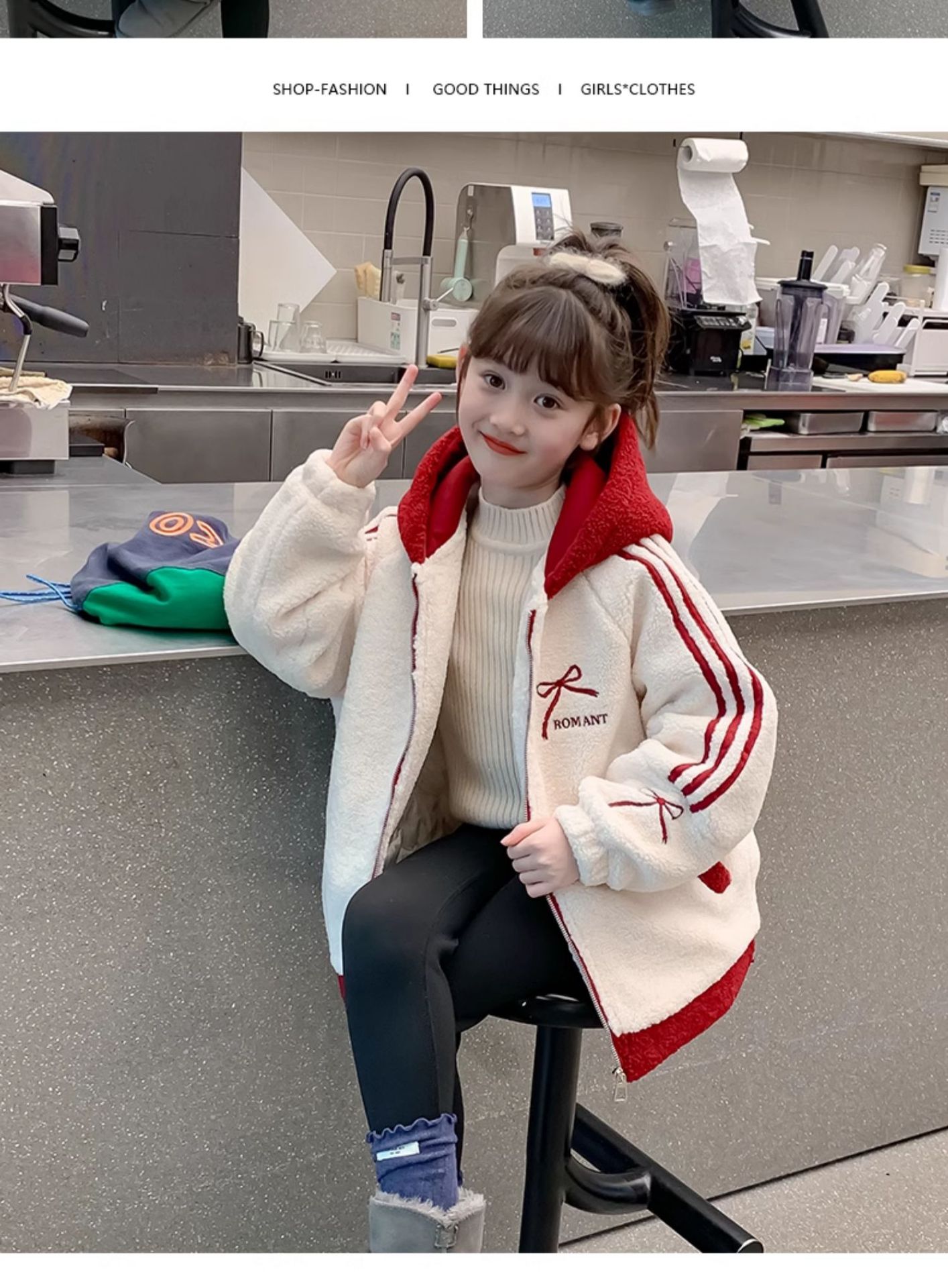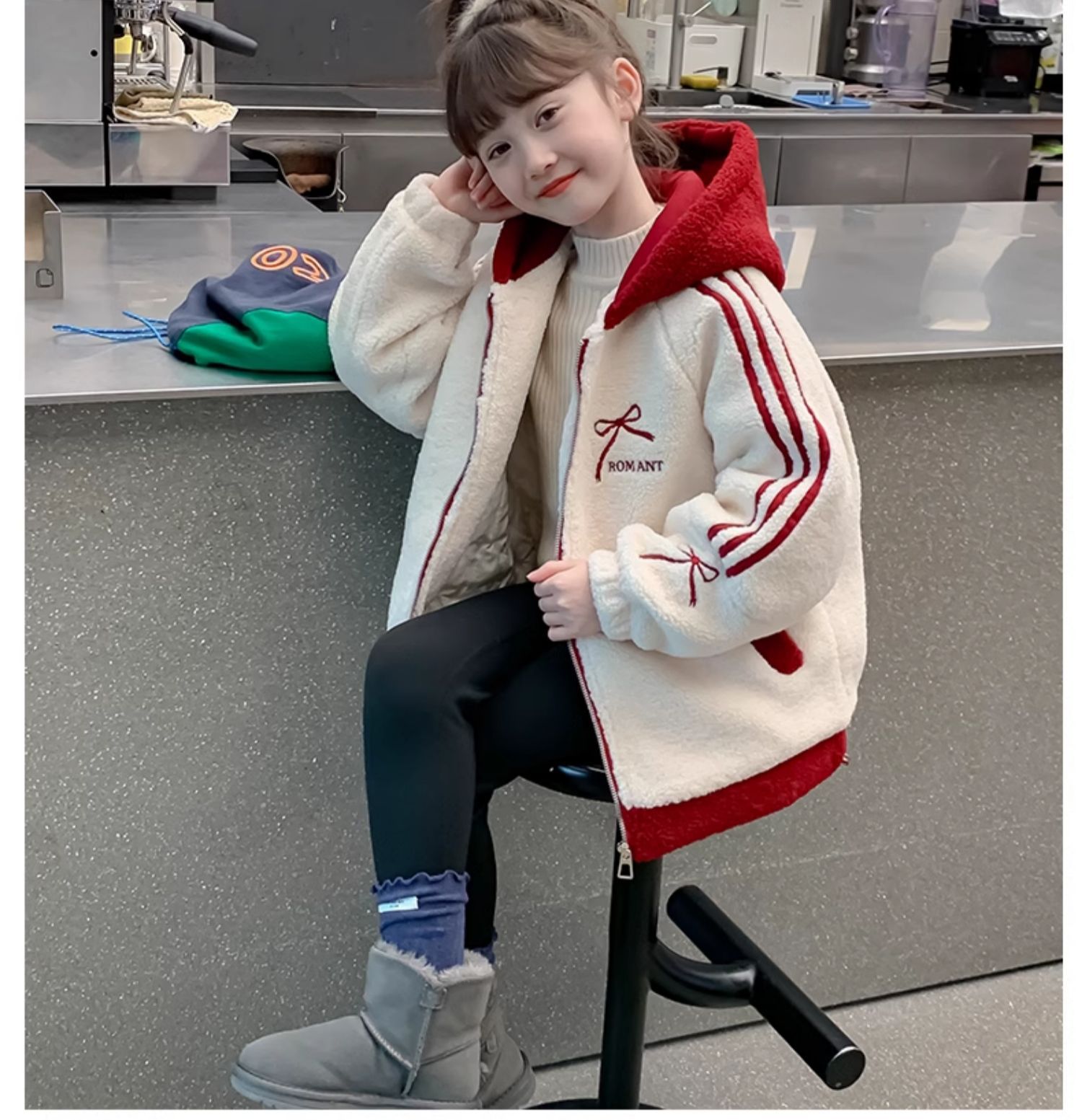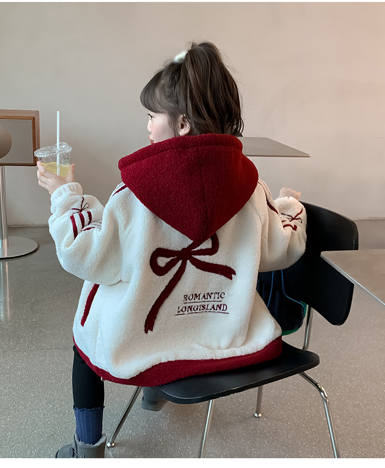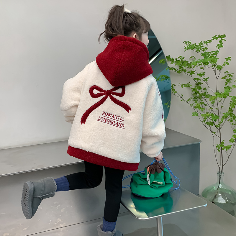 소녀 양고기 벨벳 코트 2024 가을과 겨울 새로운 어린이 서양식 한국 모직 스웨터 소녀의 기모 두꺼운 코트스토어 가기