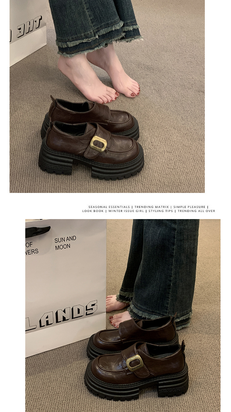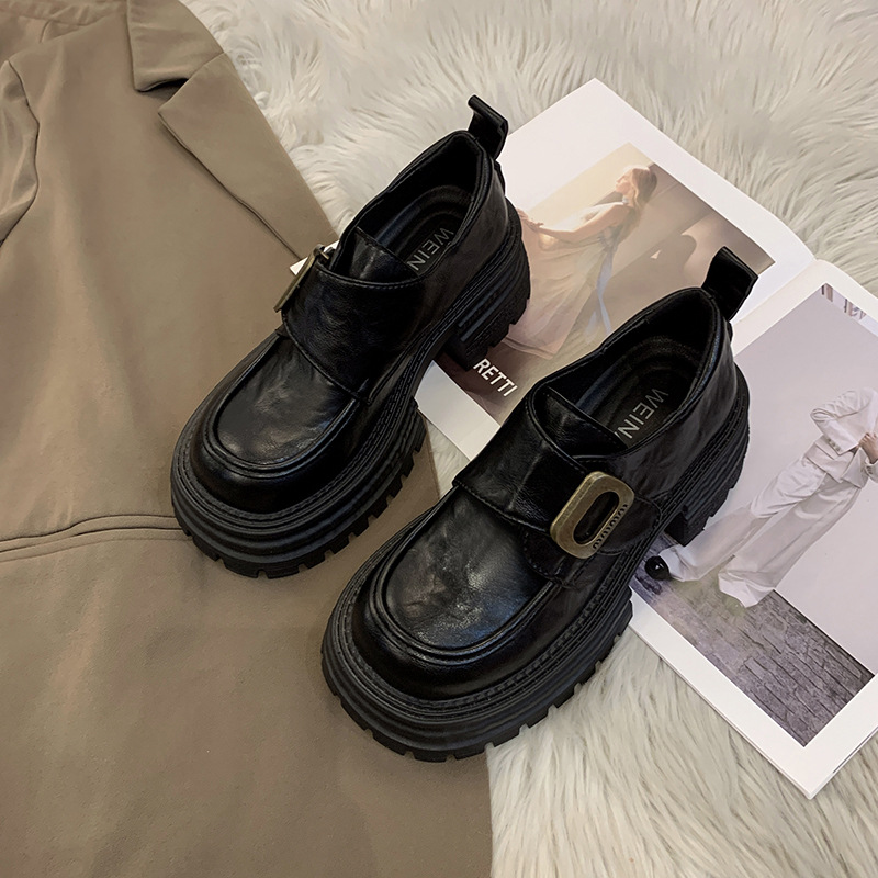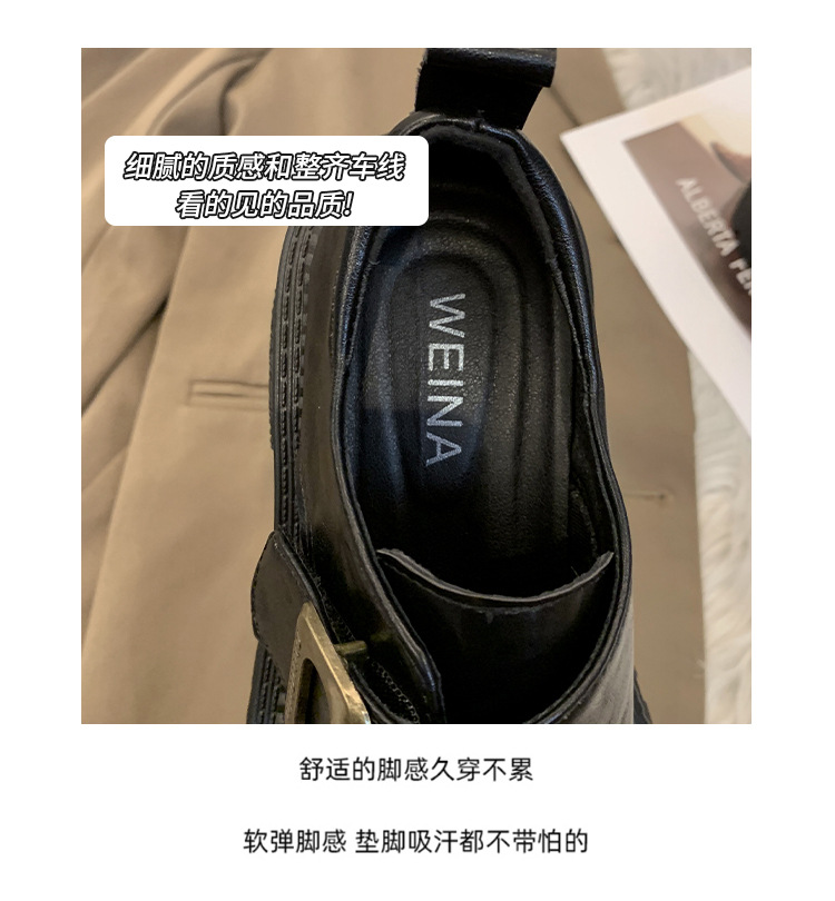 여성을위한 영국 스타일 두꺼운 밑창 작은 가죽 신발 2025 가을 새로운 복고풍 매칭 스커트 작은 메리 제인 신발스토어 가기