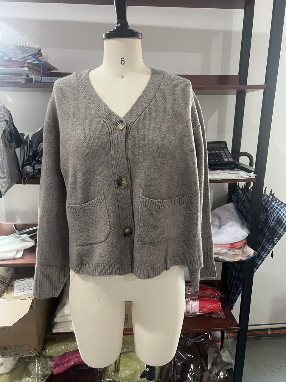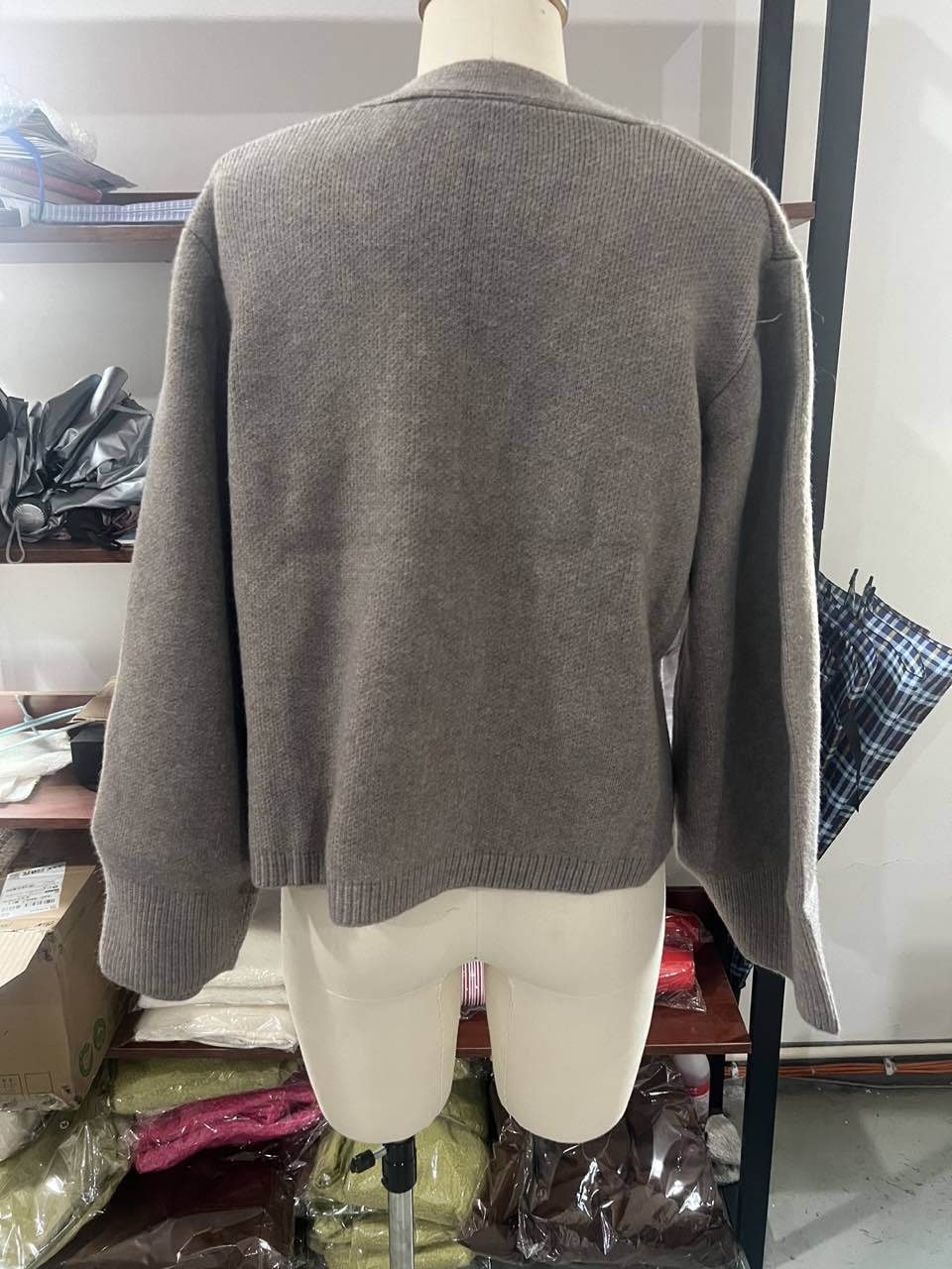 2024년 유럽 및 미국 크로스보더 가을 겨울 단색 브이넥 싱글 버튼 니트 가디건, 여유롭고 편안하며 따뜻함스토어 가기