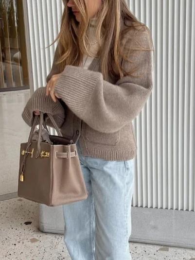 2024년 유럽 및 미국 크로스보더 가을 겨울 단색 브이넥 싱글 버튼 니트 가디건, 여유롭고 편안하며 따뜻함
