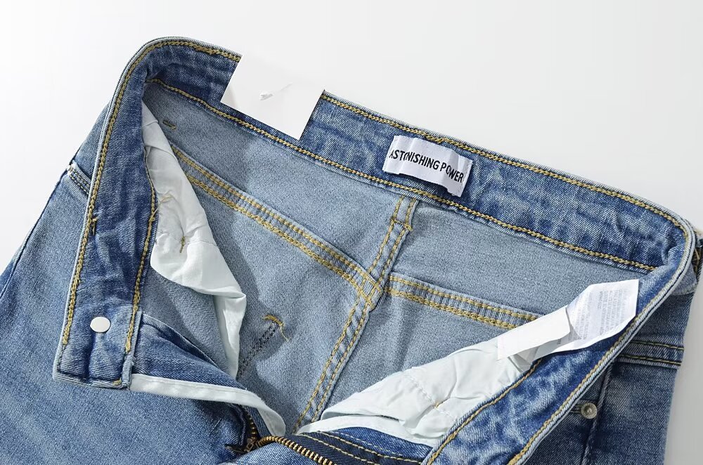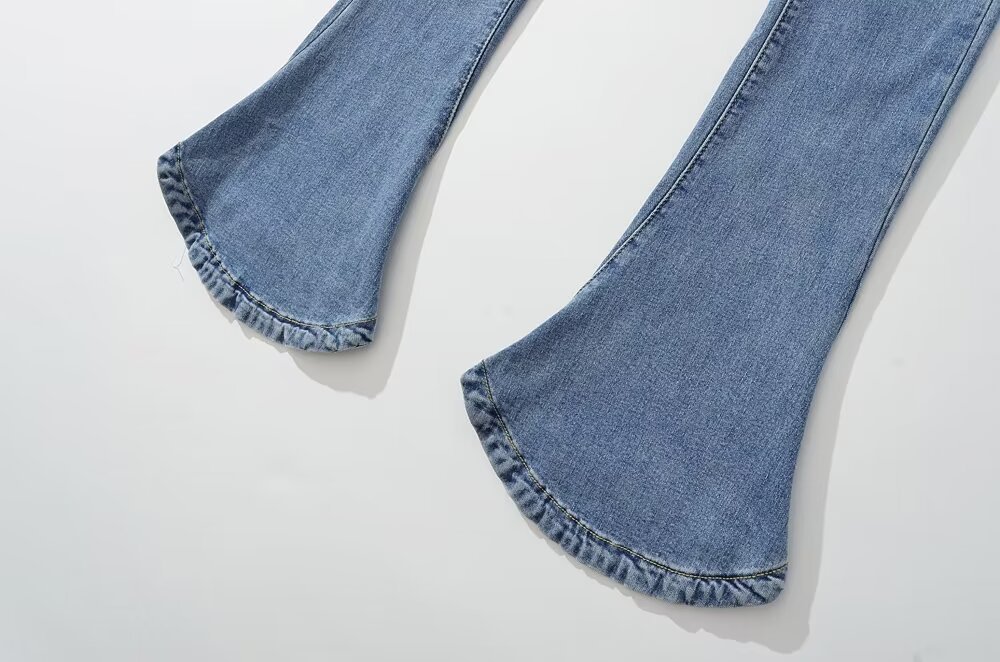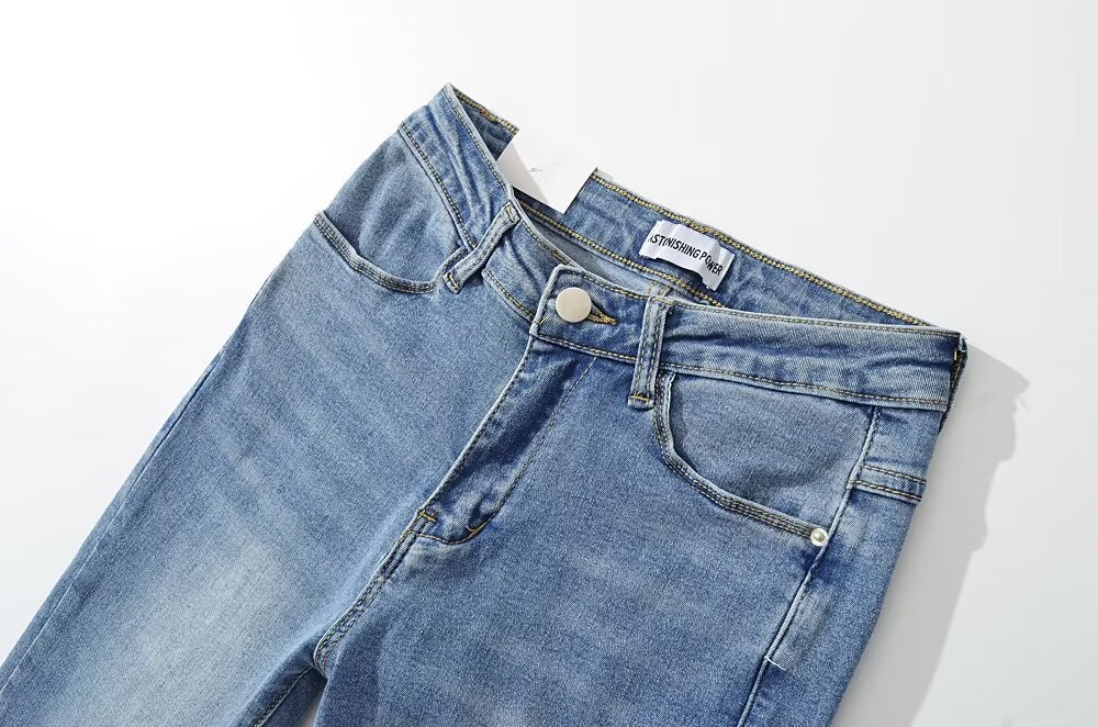 Ins Spice Girl 스타일 V-Waist Horseshoes 여성의 2023 년 봄 새로운 유럽과 미국의 미드 웨이스트 스키니 스트레치 청바지 바지