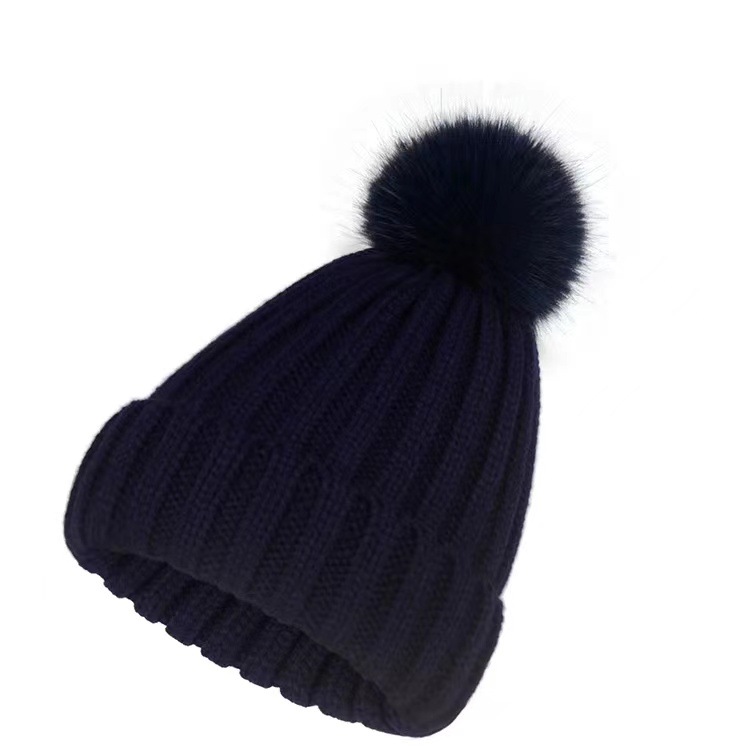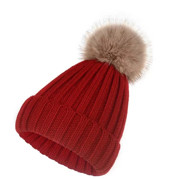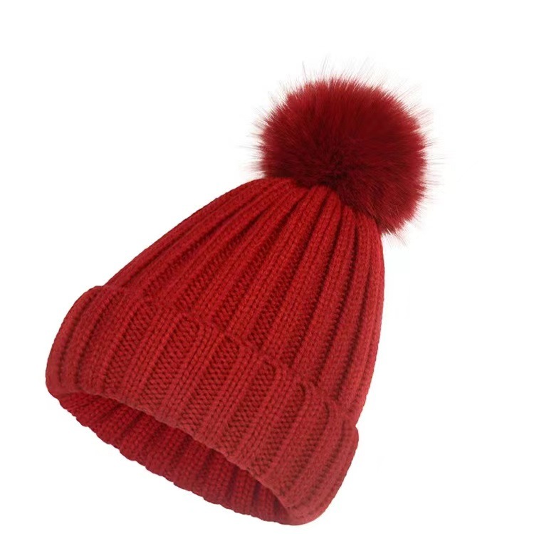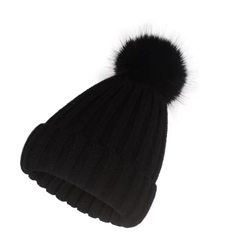 겨울 니트 모직 모자 어린이 가을과 겨울 연인 패션 조커 모조 여우 모피 공 따뜻한 모자 조수스토어 가기