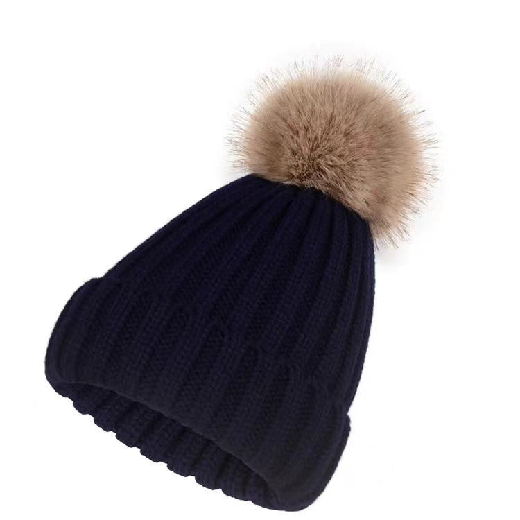 겨울 니트 모직 모자 어린이 가을과 겨울 연인 패션 조커 모조 여우 모피 공 따뜻한 모자 조수