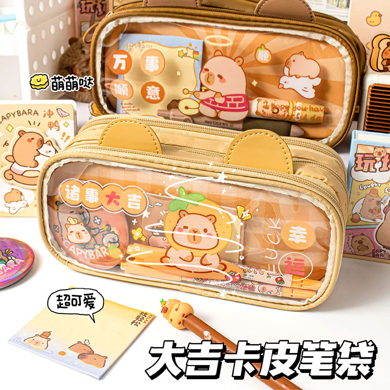 카피 발라 투명 연필 가방 귀여운 만화 3 층 대용량 저장 문구 가방 초등학교 연필 케이스 도매