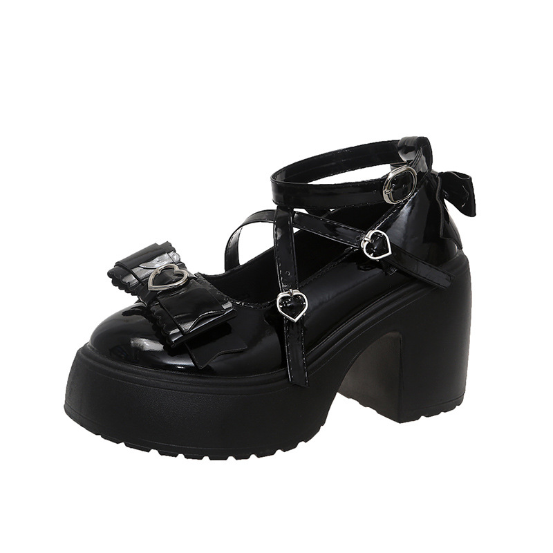새로운 프랑스 스타일 메리 제인 두꺼운 밑바닥 둥근 발가락 2024 가을 원피스 얕은 입 로리타 가죽 신발 여성 신발스토어 가기