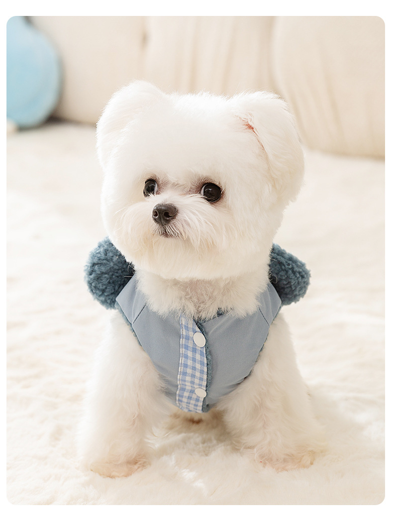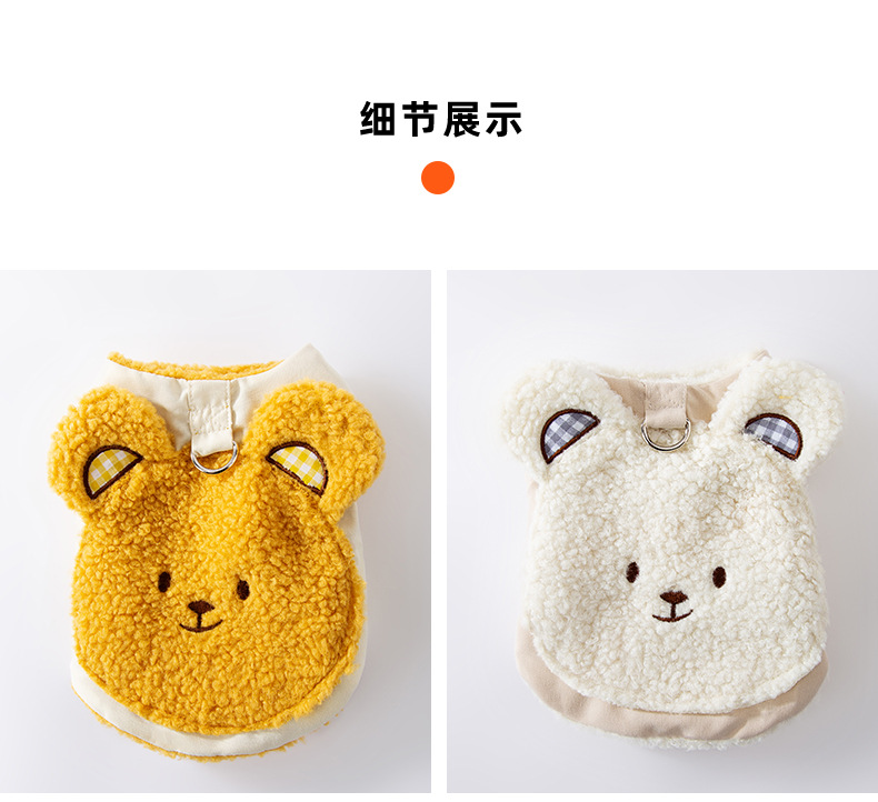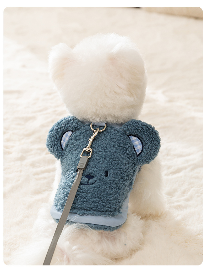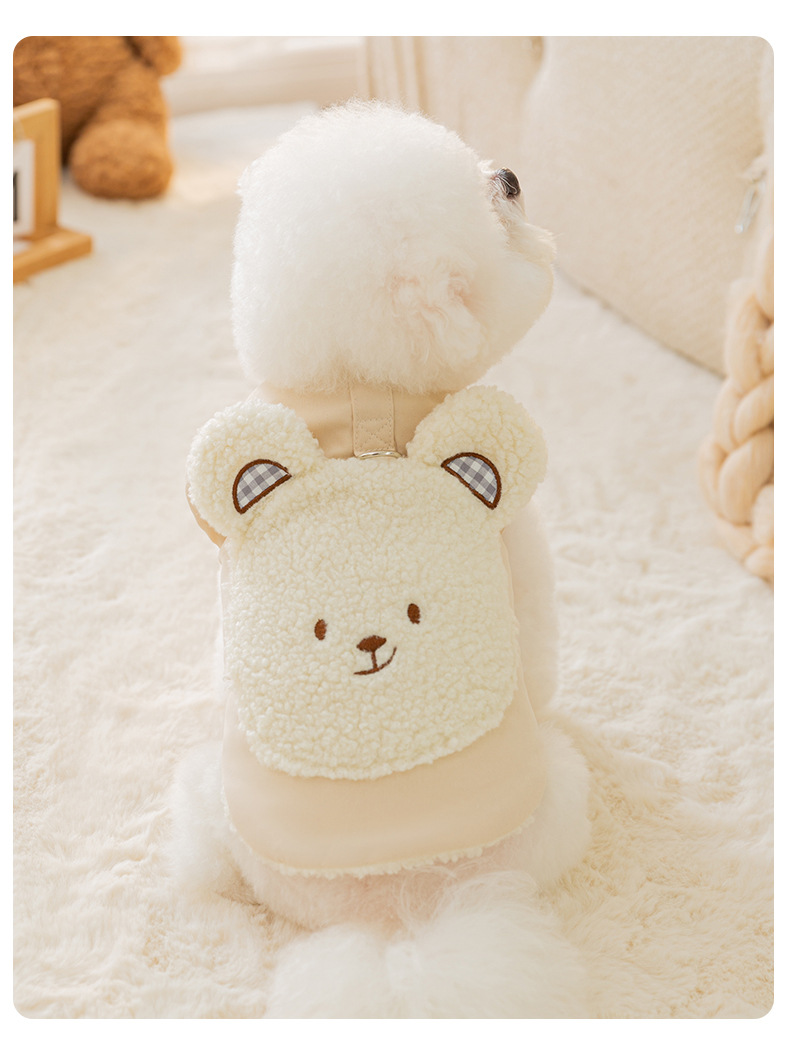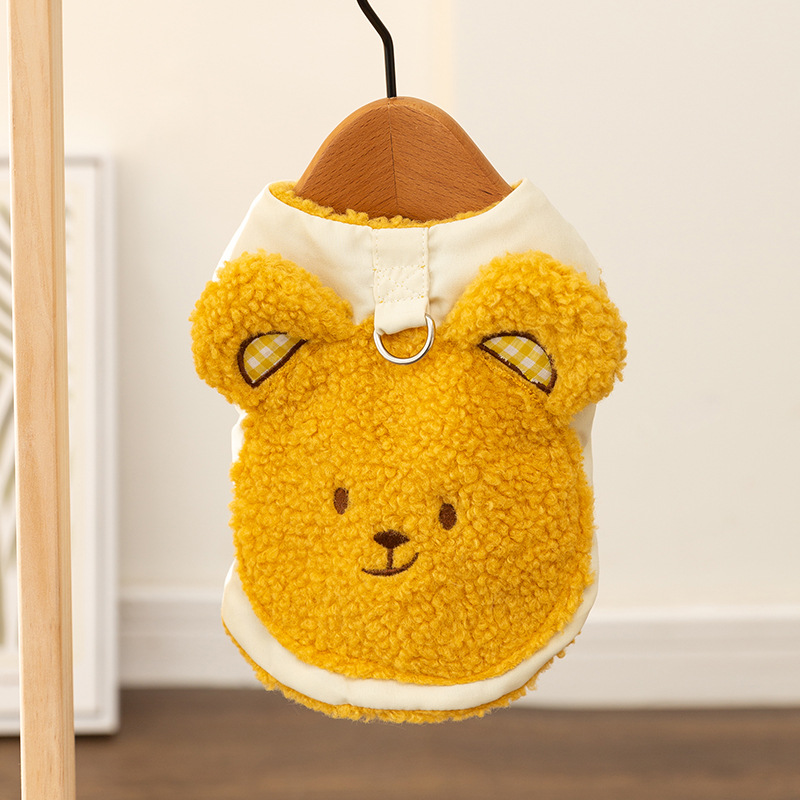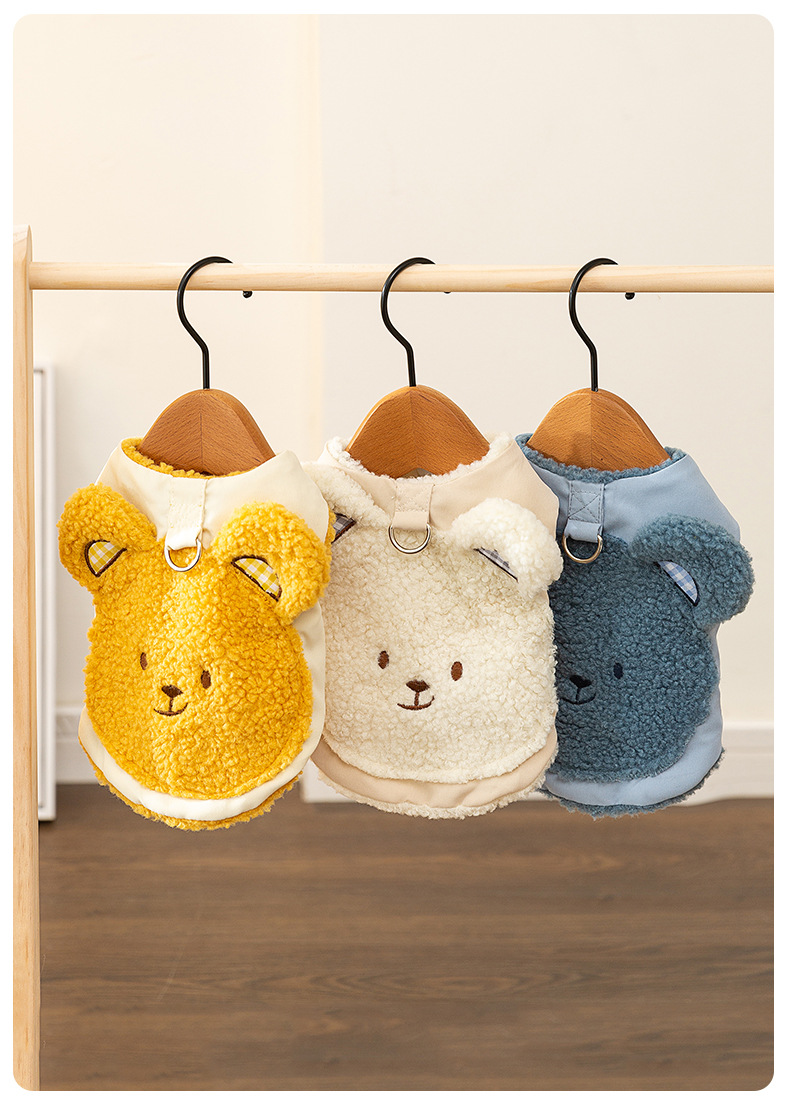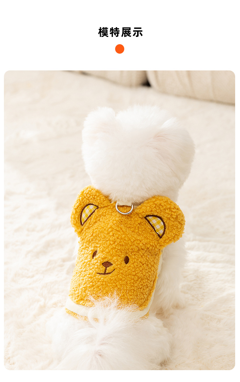 개옷 가을과 겨울 입체 곰 견인 조끼 기모 따뜻한 두 다리 테디 베어 애완 동물 옷스토어 가기