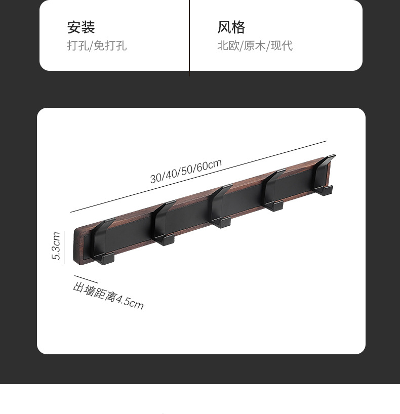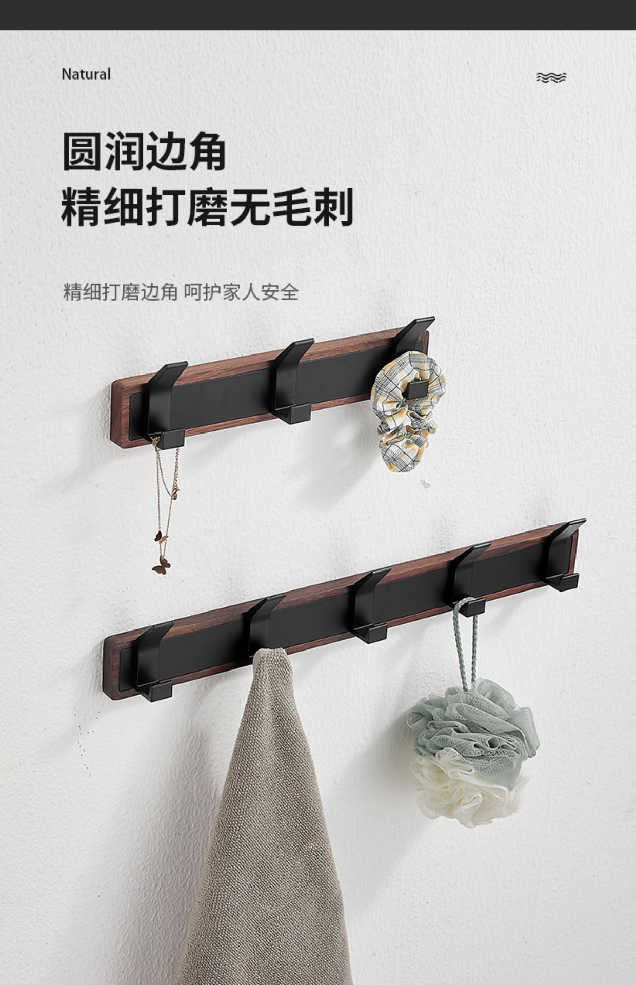 • 천연 블랙 월넛 + 후크 5개
