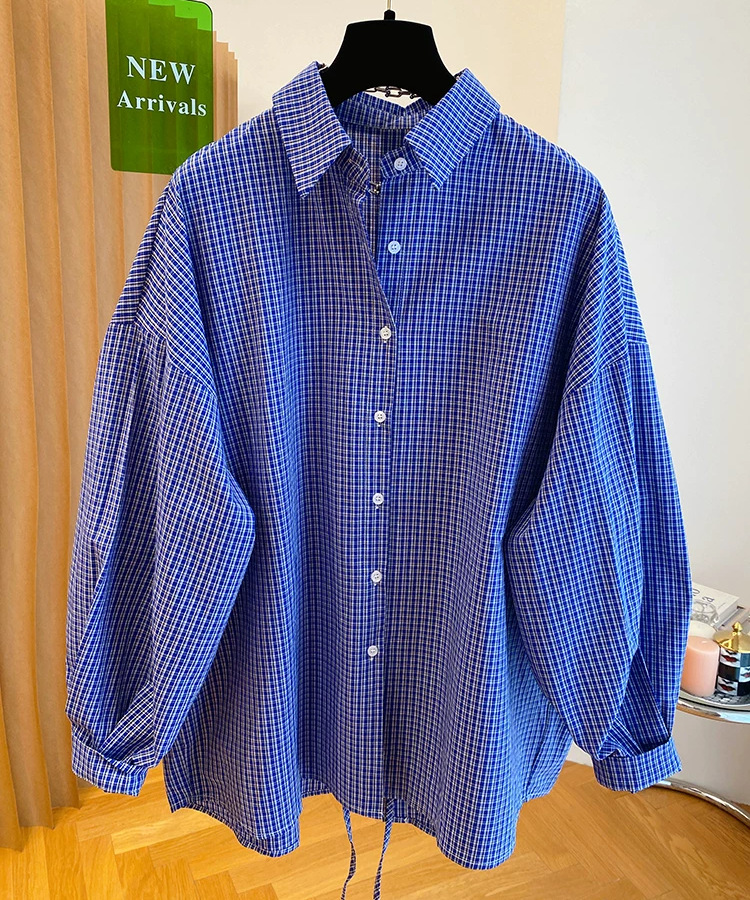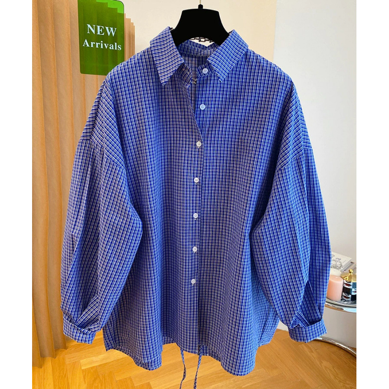 유럽 스타일 2025 가을 신상 니치 레트로 블루 체크 셔츠 여성용 뒤트임 레이지 스타일 레이어드 여성 패션스토어 가기