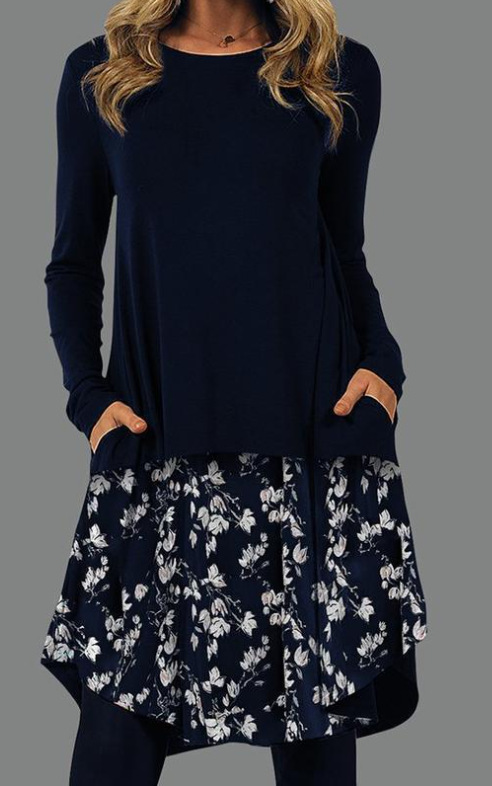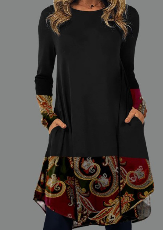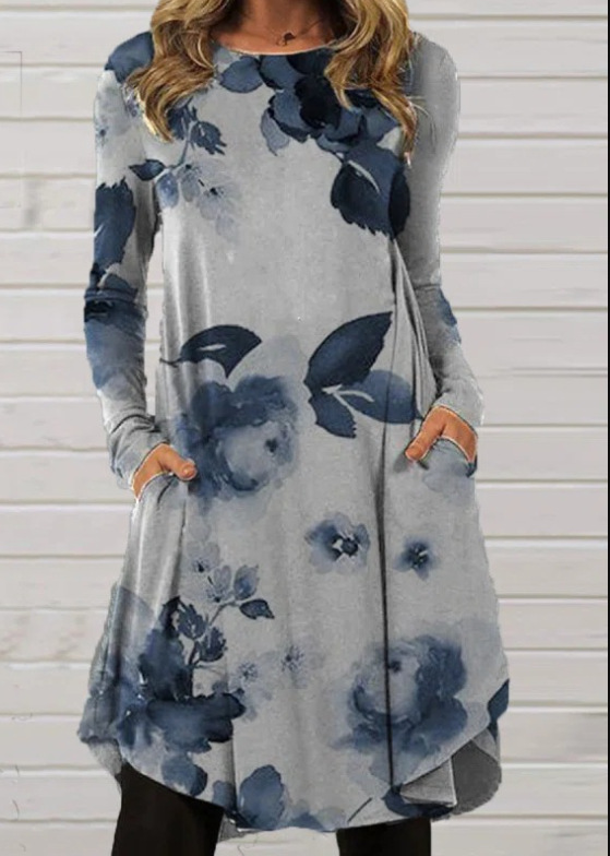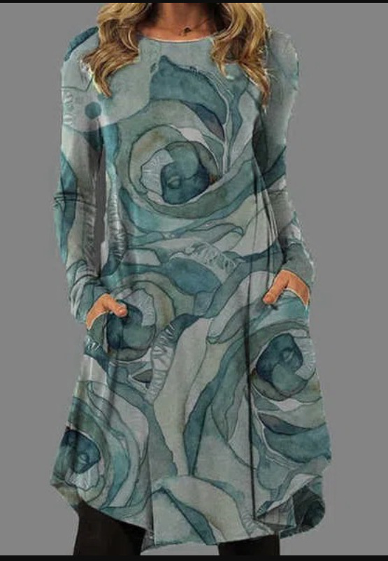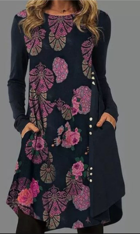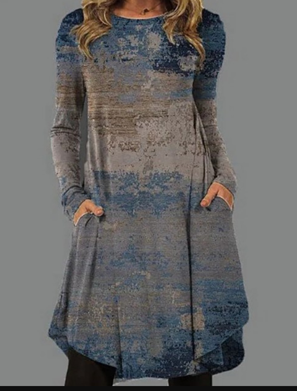 2024 국경 아마존 WISH 둥근 목 긴 소매 원피스 멀티 컬러 멀티 사이즈 포지셔닝 여성 의류스토어 가기