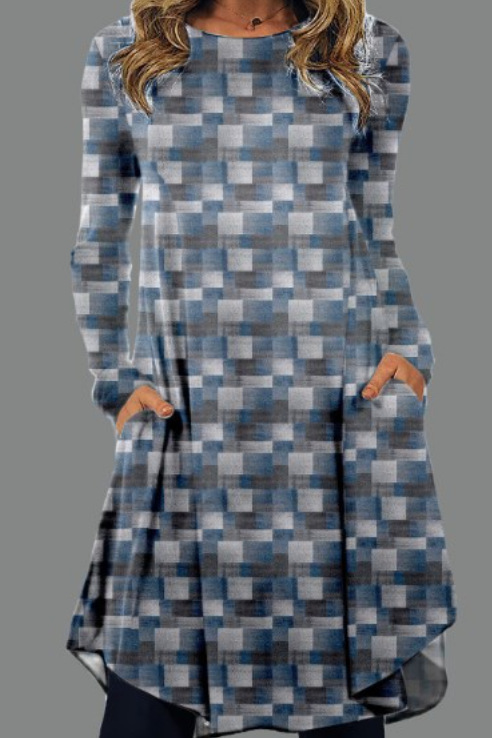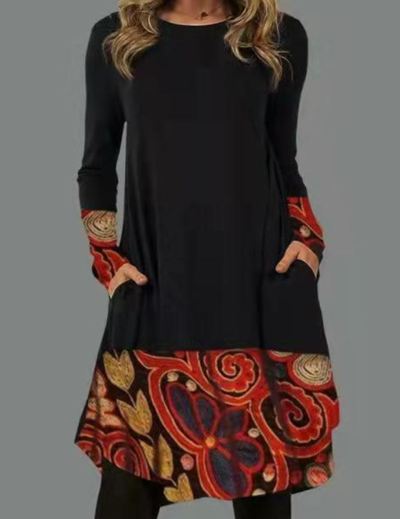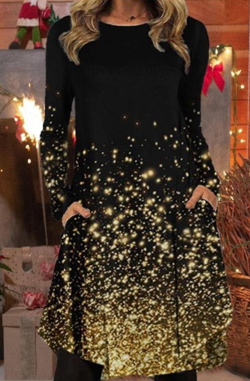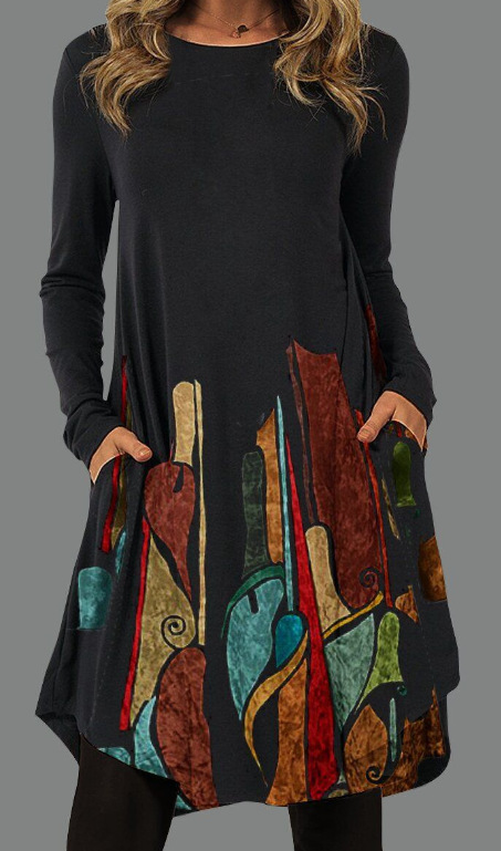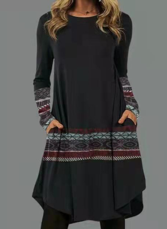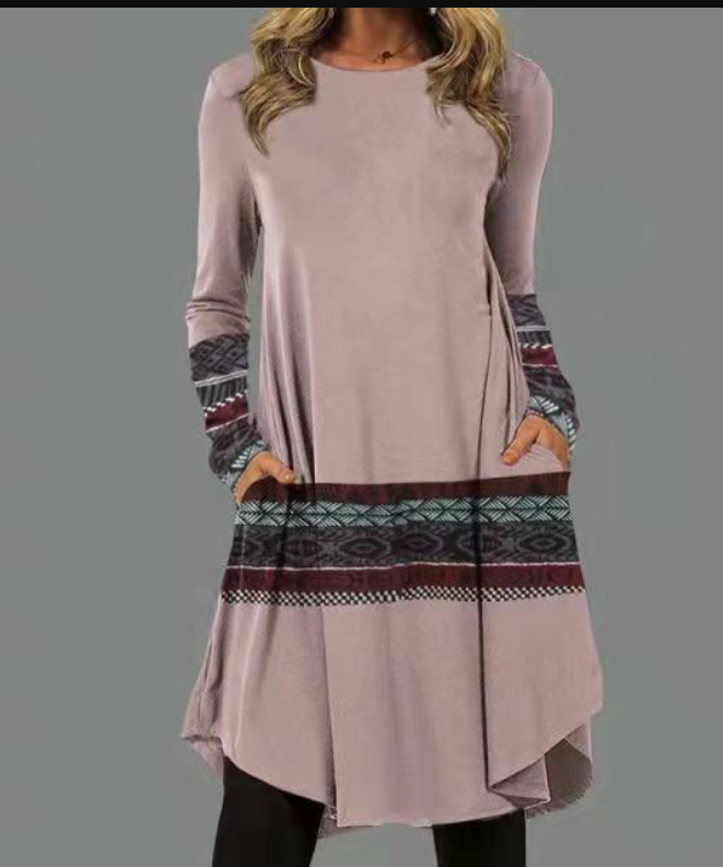 2024 국경 아마존 WISH 둥근 목 긴 소매 원피스 멀티 컬러 멀티 사이즈 포지셔닝 여성 의류