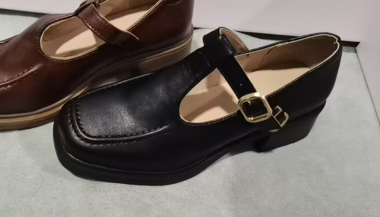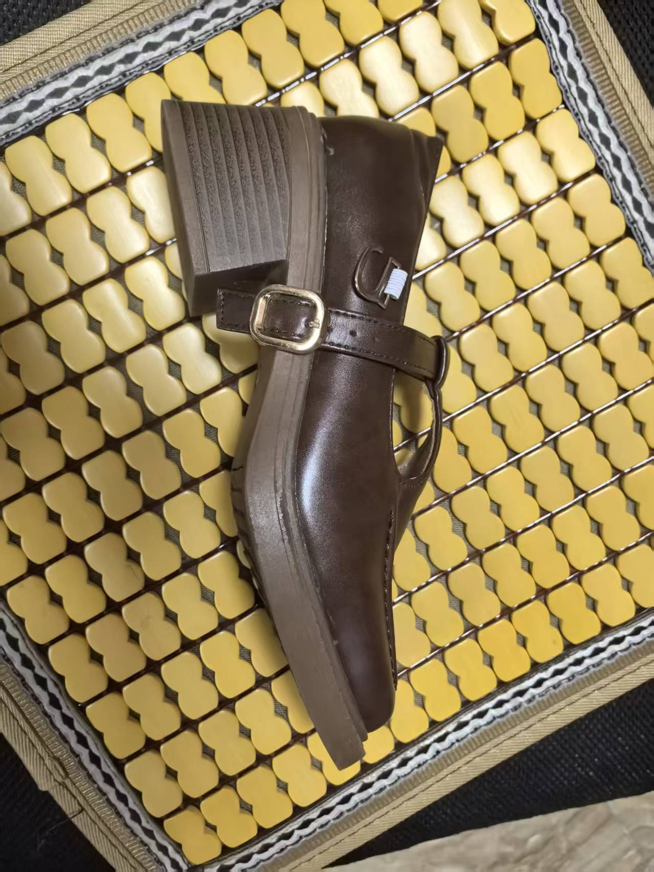 영국 작은 가죽 신발 여성 디자인 센스 틈새 미들 힐 두꺼운 힐 여성 신발 2024 가을 프랑스 복고풍 다크 브라운 밝은 입 싱글 레이어 신발스토어 가기