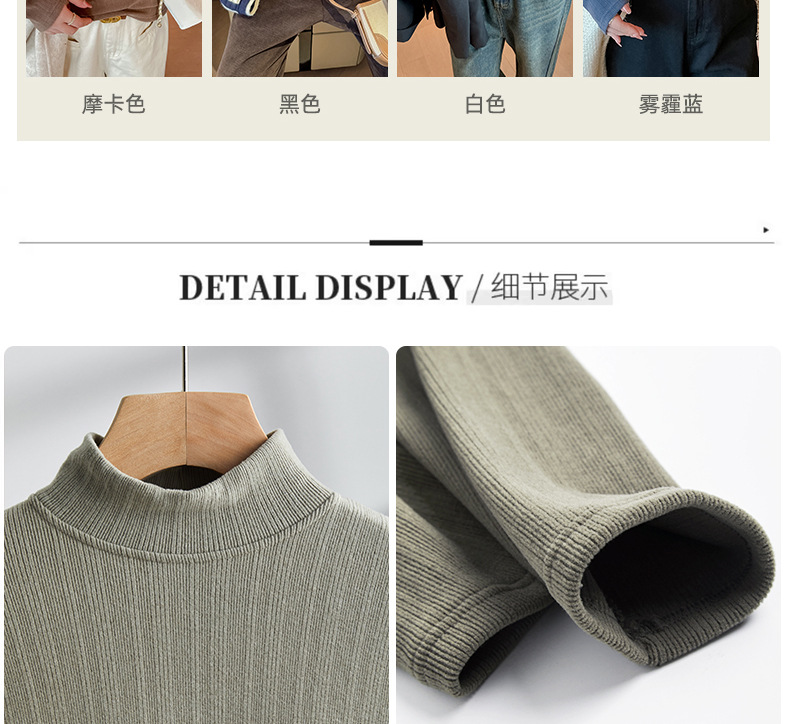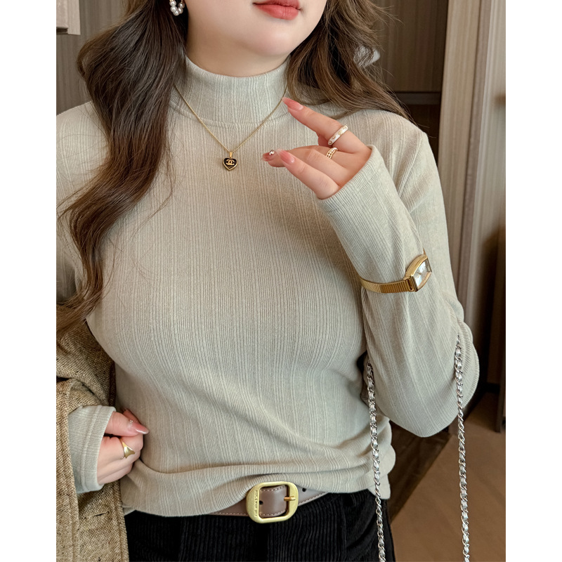 플러스 사이즈 여성의 가을과 겨울 샌딩 기모 세미 하이 칼라 긴 소매 바닥 셔츠와 중간 칼라 실 벨벳을 착용 할 수 있습니다.