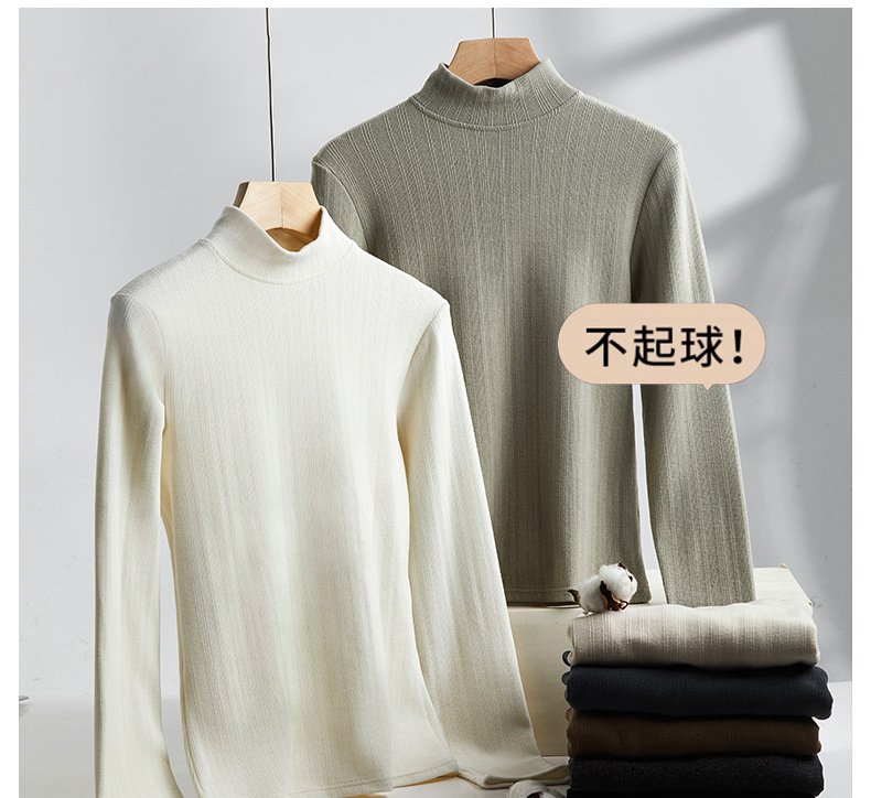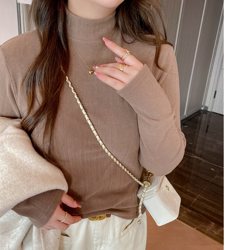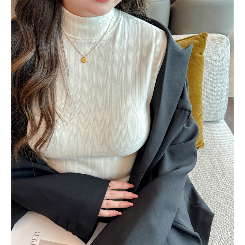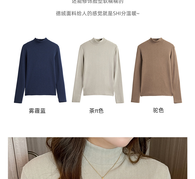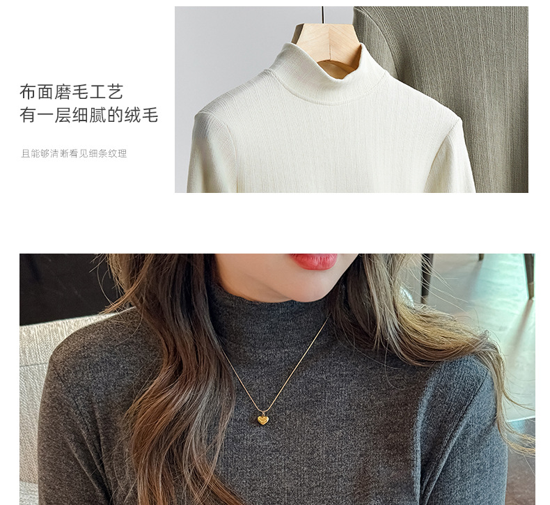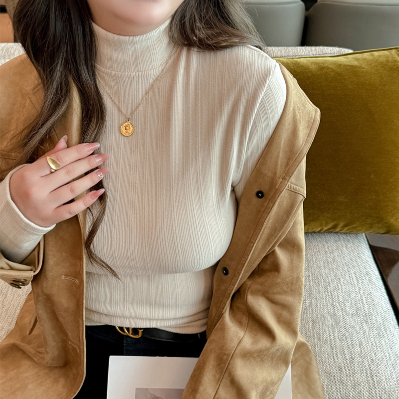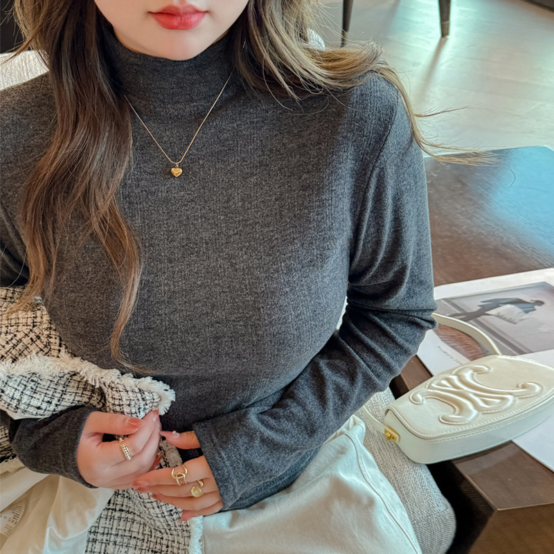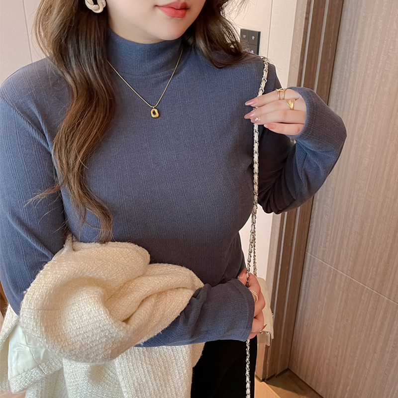 플러스 사이즈 여성의 가을과 겨울 샌딩 기모 세미 하이 칼라 긴 소매 바닥 셔츠와 중간 칼라 실 벨벳을 착용 할 수 있습니다.스토어 가기