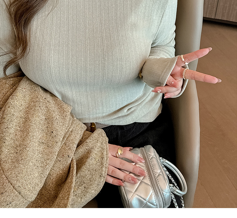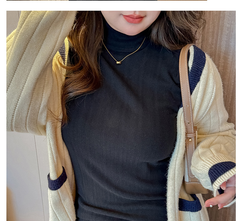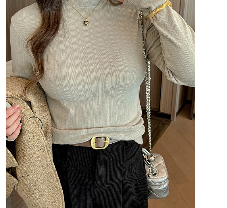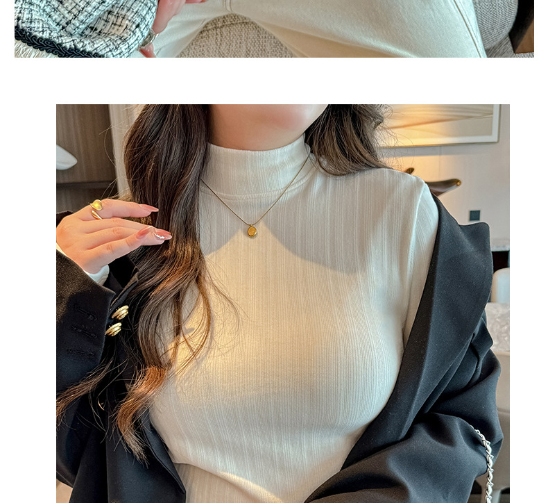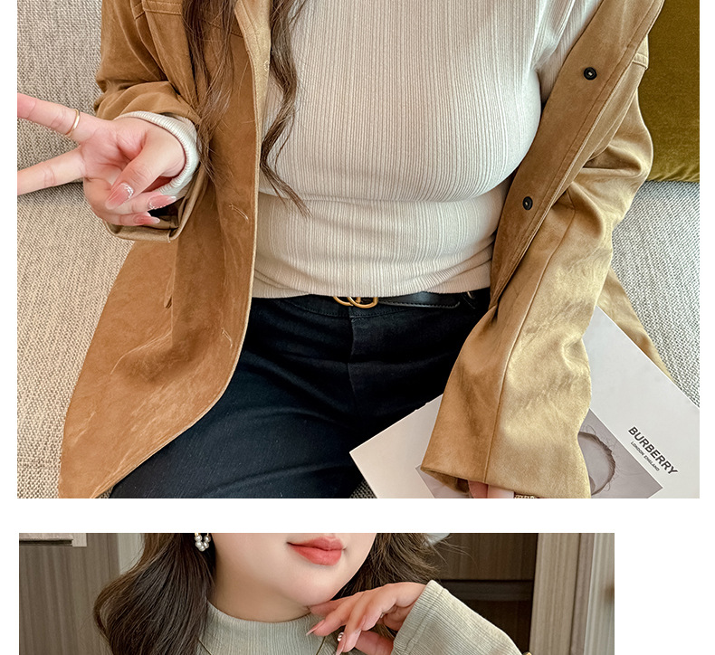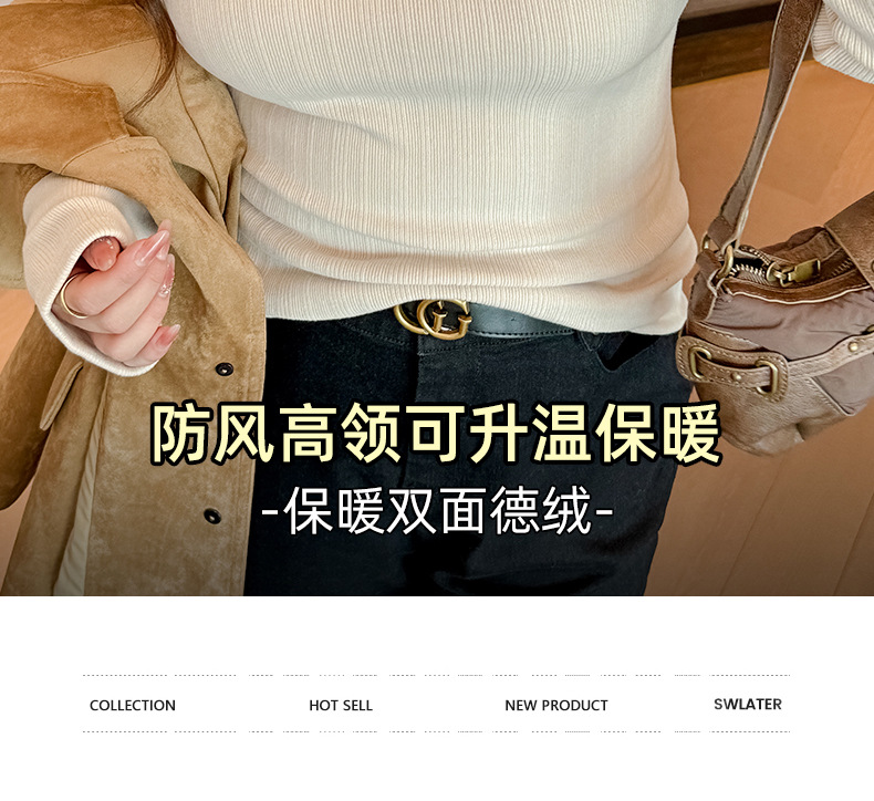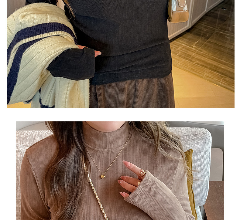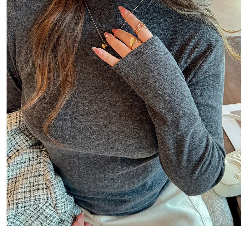 플러스 사이즈 여성의 가을과 겨울 샌딩 기모 세미 하이 칼라 긴 소매 바닥 셔츠와 중간 칼라 실 벨벳을 착용 할 수 있습니다.스토어 가기