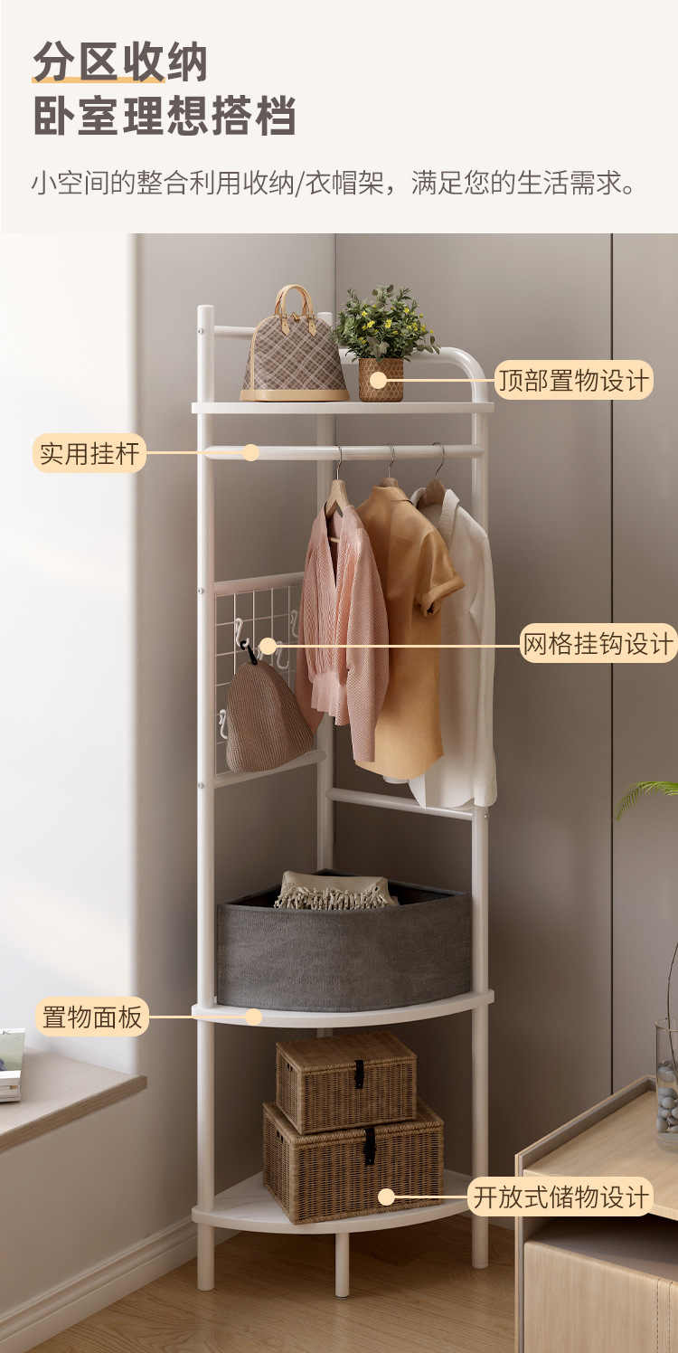코너 옷걸이, 침실용 메탈 다기능 옷걸이, 현관 실내 간편 스탠드형 옷걸이