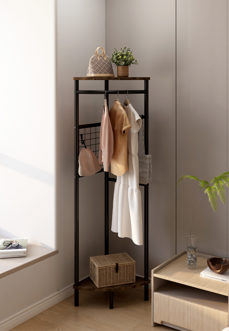 코너 옷걸이, 침실용 메탈 다기능 옷걸이, 현관 실내 간편 스탠드형 옷걸이스토어 가기