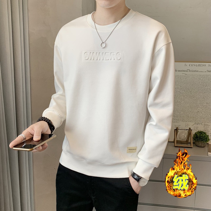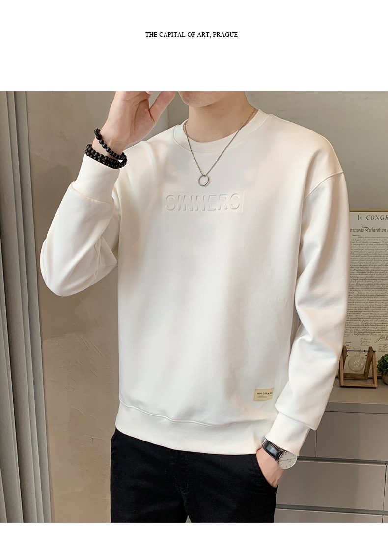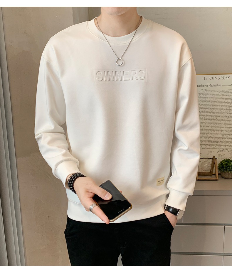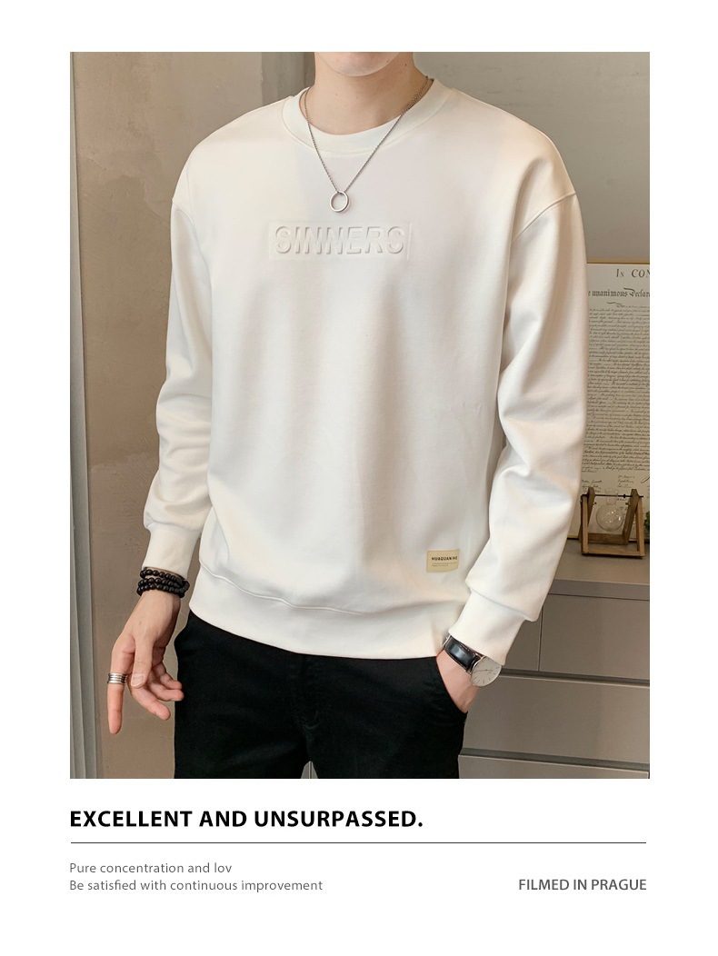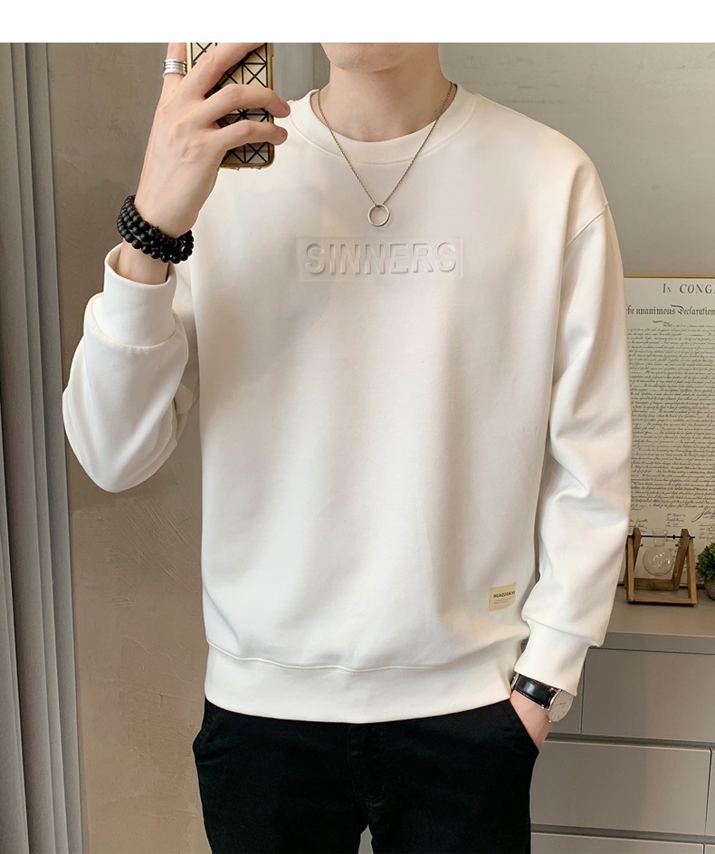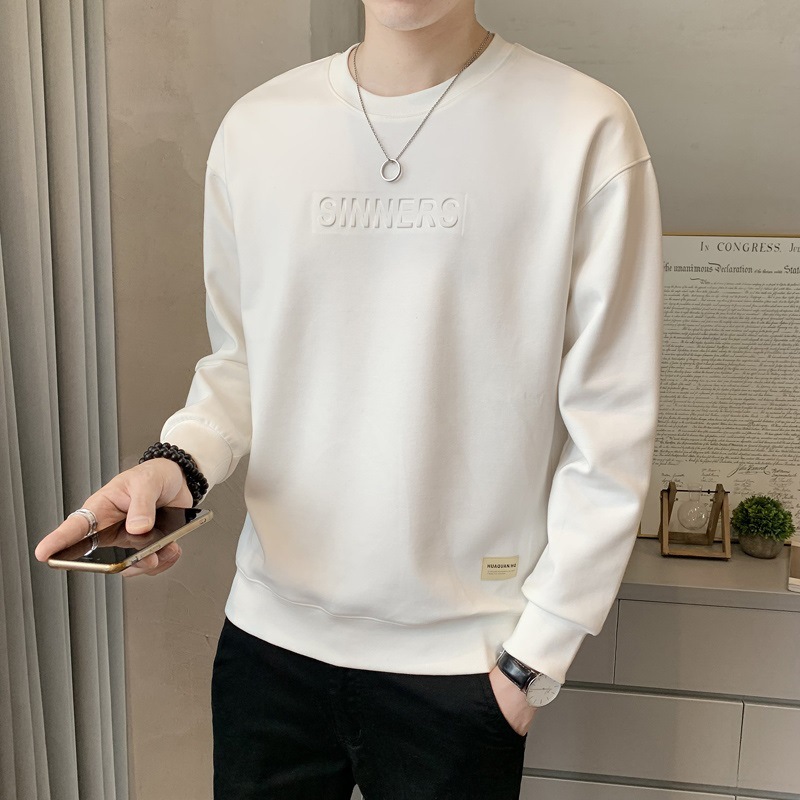 2024 새로운 봄과 가을 남자의 트렌디 인 디자인 크루 넥 화이트 스웨터 긴팔 티셔츠 남성베이스 셔츠스토어 가기