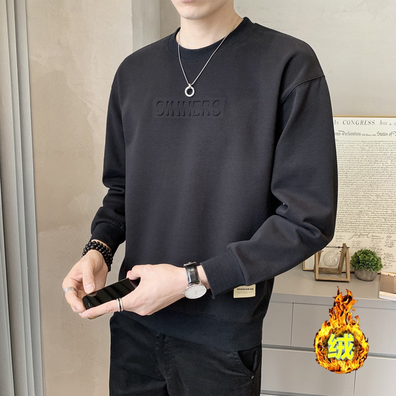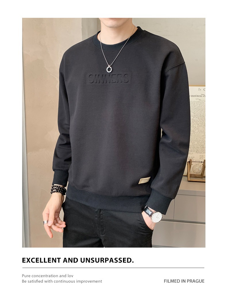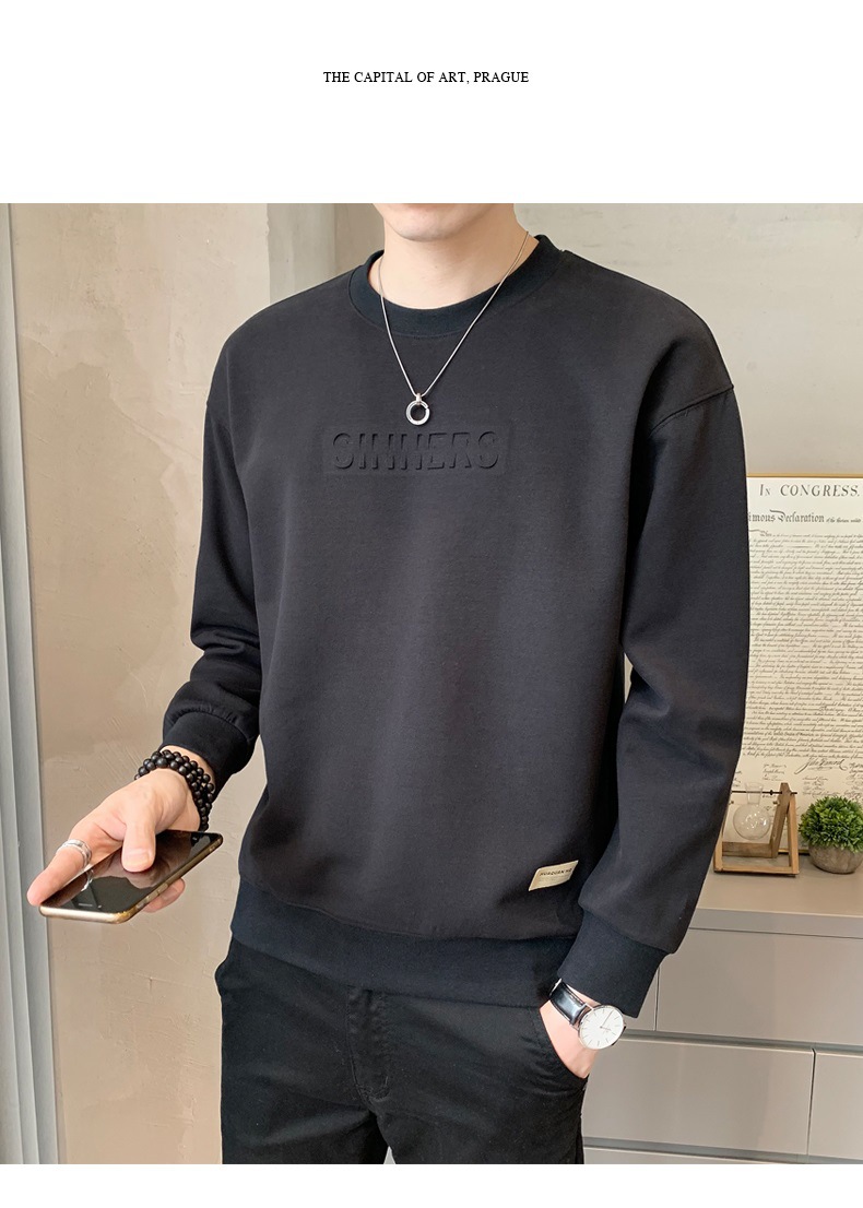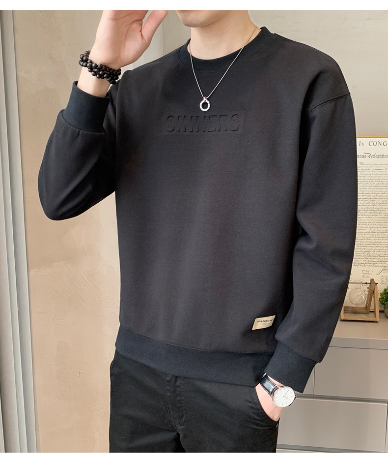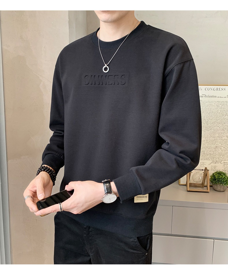 2024 새로운 봄과 가을 남자의 트렌디 인 디자인 크루 넥 화이트 스웨터 긴팔 티셔츠 남성베이스 셔츠스토어 가기