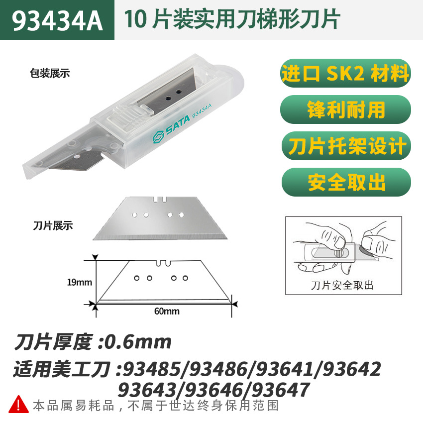 • 93434A 실용적인 칼 사다리꼴 칼날 10개 세트