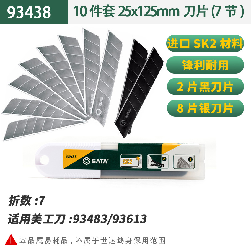 • 93438 유틸리티 나이프 블레이드 10개 세트 7개 섹션 25×1mm
