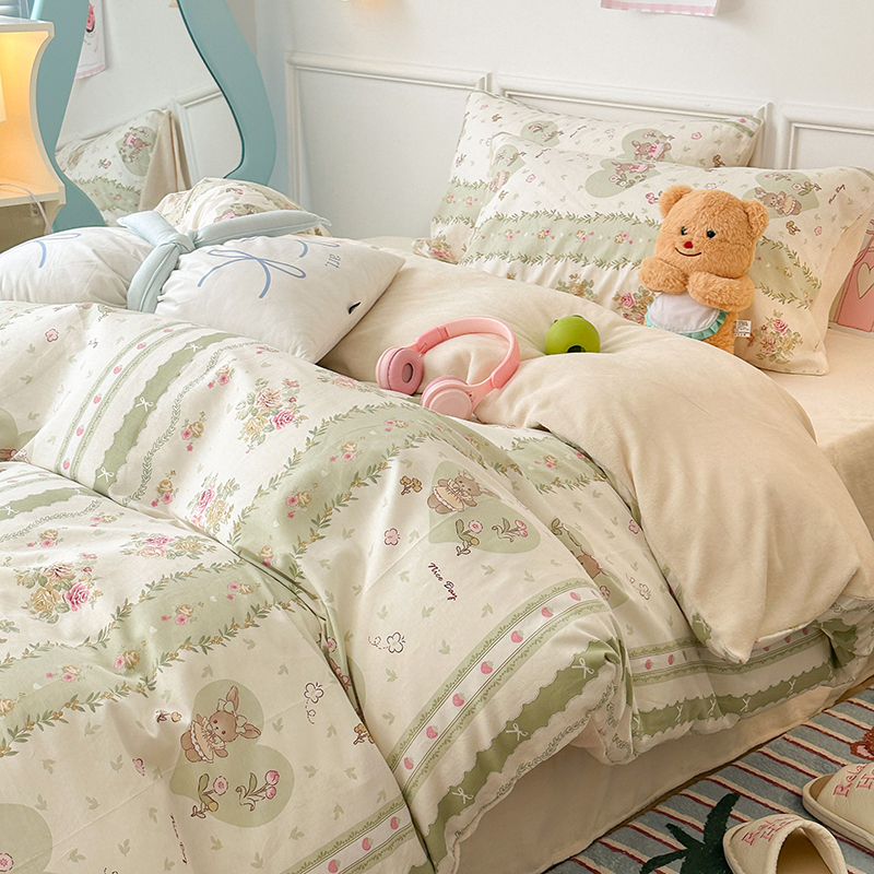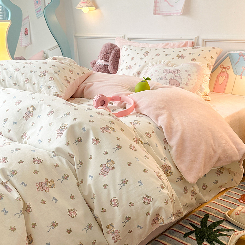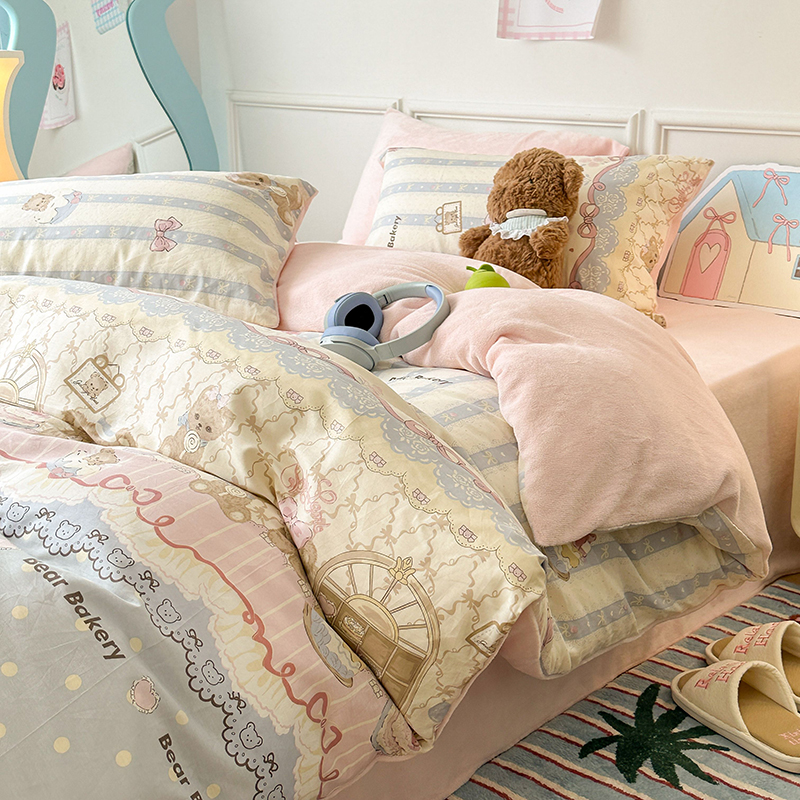 로리타 겨울 AB 코튼 플러스 벨벳 4 피스 세트 두껍게 면화 밀크 벨벳 산호 벨벳 퀼트 커버 3 피스 세트