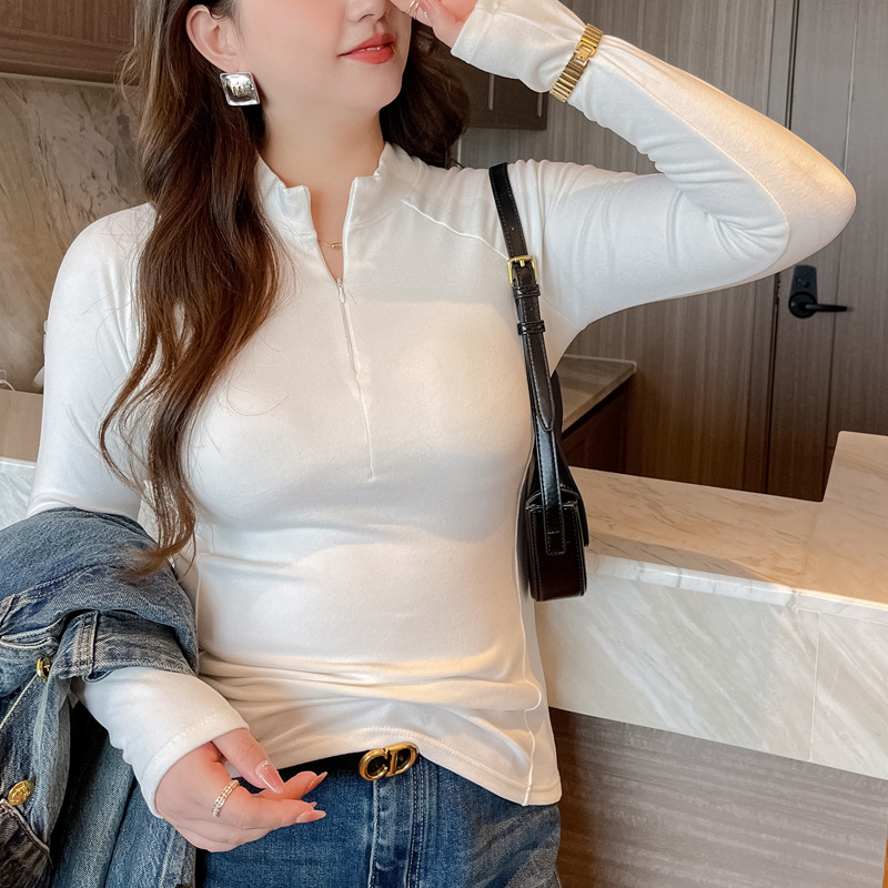 엄격 선택 가을 및 겨울 샌딩베이스 셔츠 여성 내복 틈새 디자인 감각 긍정적 인 어깨 긴 소매 티셔츠 외부 착용 플러스 사이즈스토어 가기