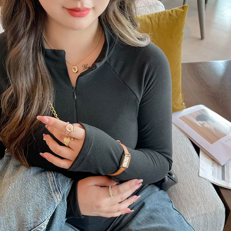 엄격 선택 가을 및 겨울 샌딩베이스 셔츠 여성 내복 틈새 디자인 감각 긍정적 인 어깨 긴 소매 티셔츠 외부 착용 플러스 사이즈