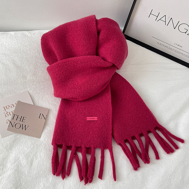 • [100 울 태슬 스카프] 로즈 레드