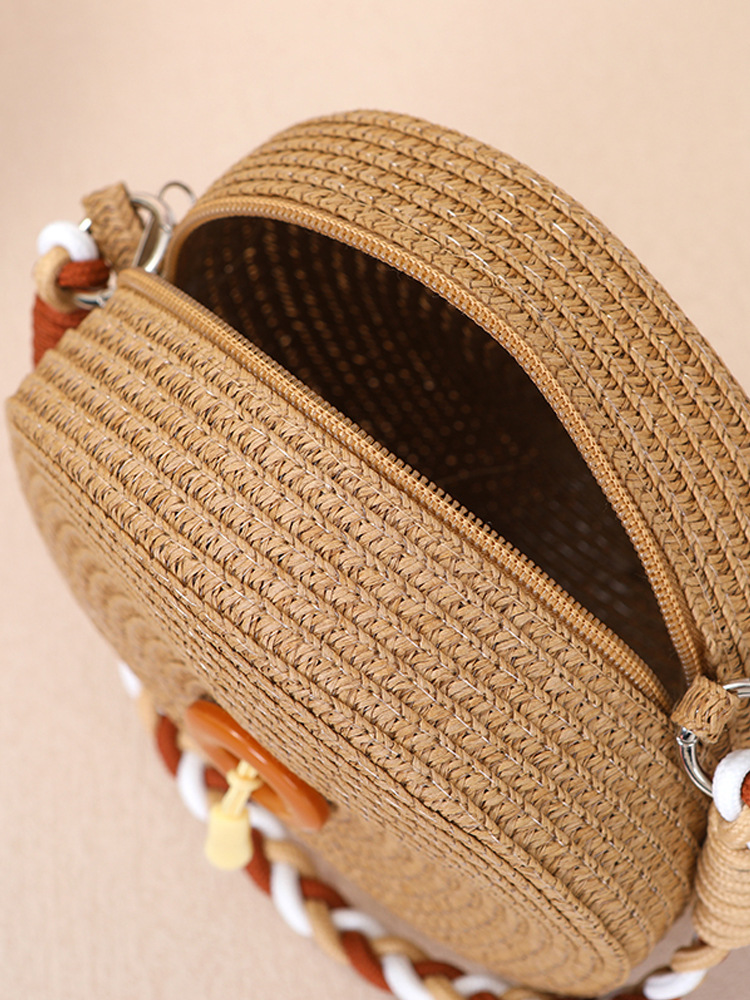 휴대용 컬러풀 밀짚 가방 해변용 여성용 2025 신상 비치 밀짚 가방 휴대폰 크로스백 미니백