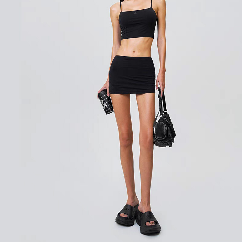 SMFKHug 스킨 스커트 크로스 플라워 라이트 스트레치 플리츠 스커트 핫걸 힙 스커트 신작