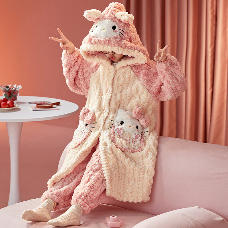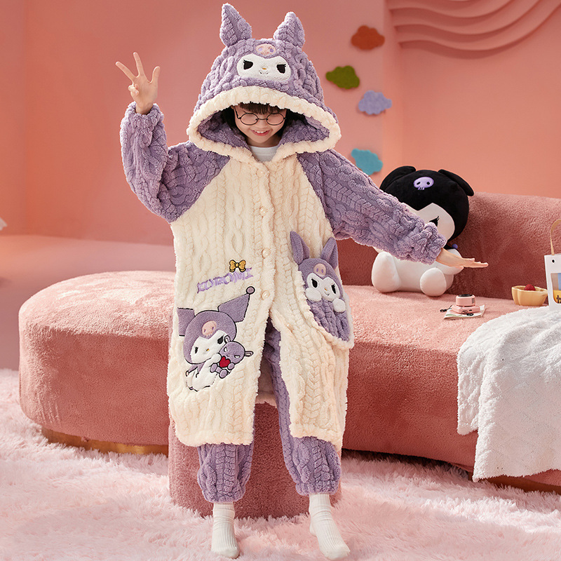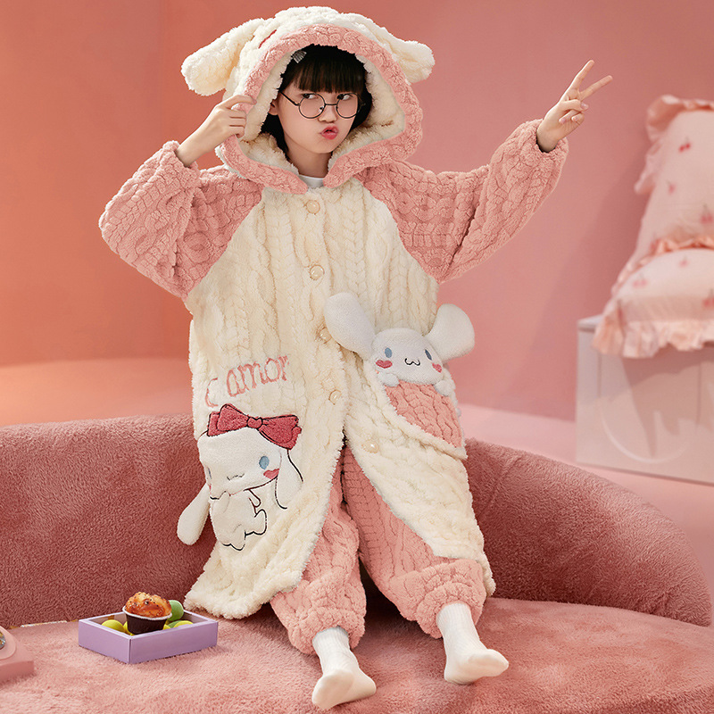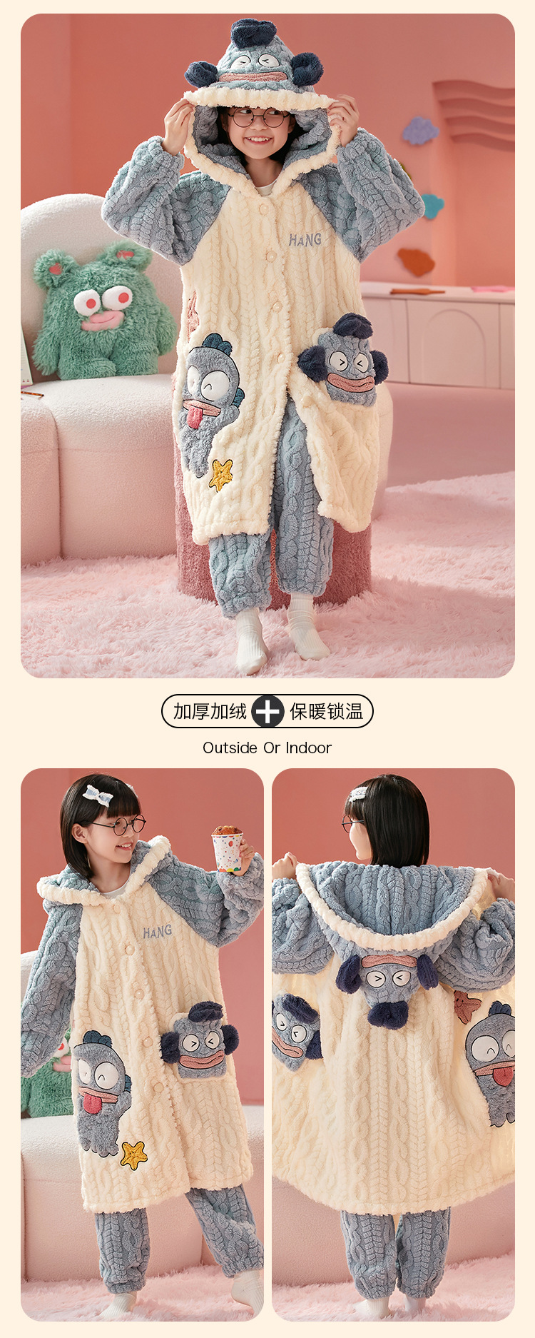 2024 년 새 소녀 잠옷 가을과 겨울 기모 두꺼운 산호 양털 어린이 잠옷 긴 소녀 세트 겨울 스타일스토어 가기