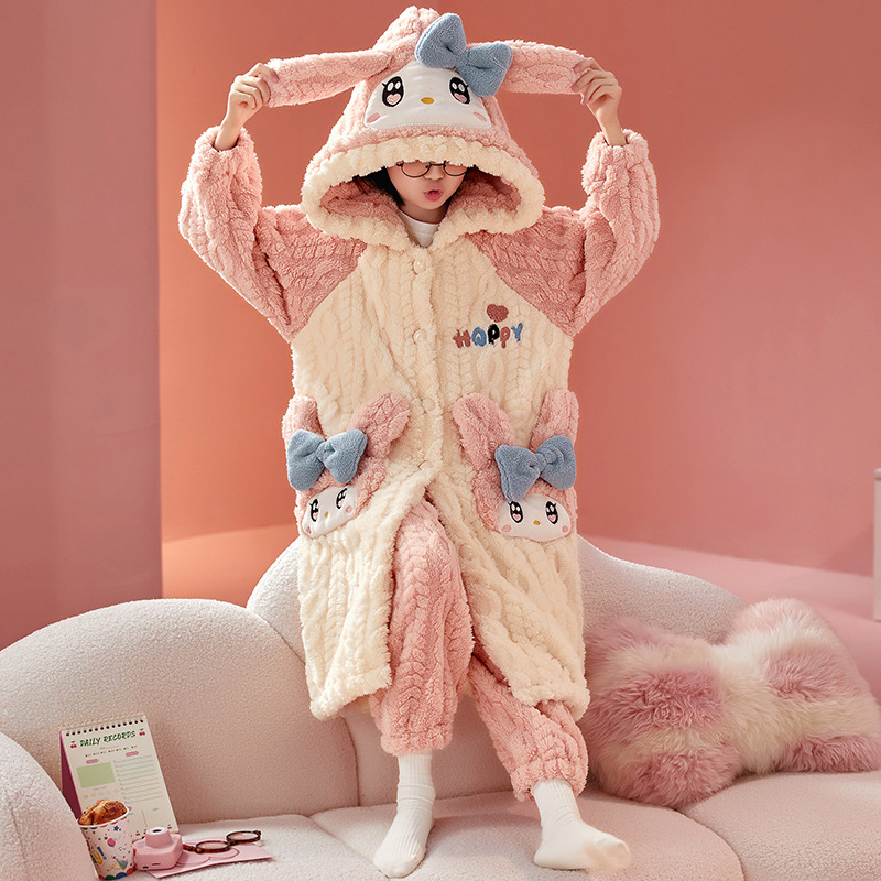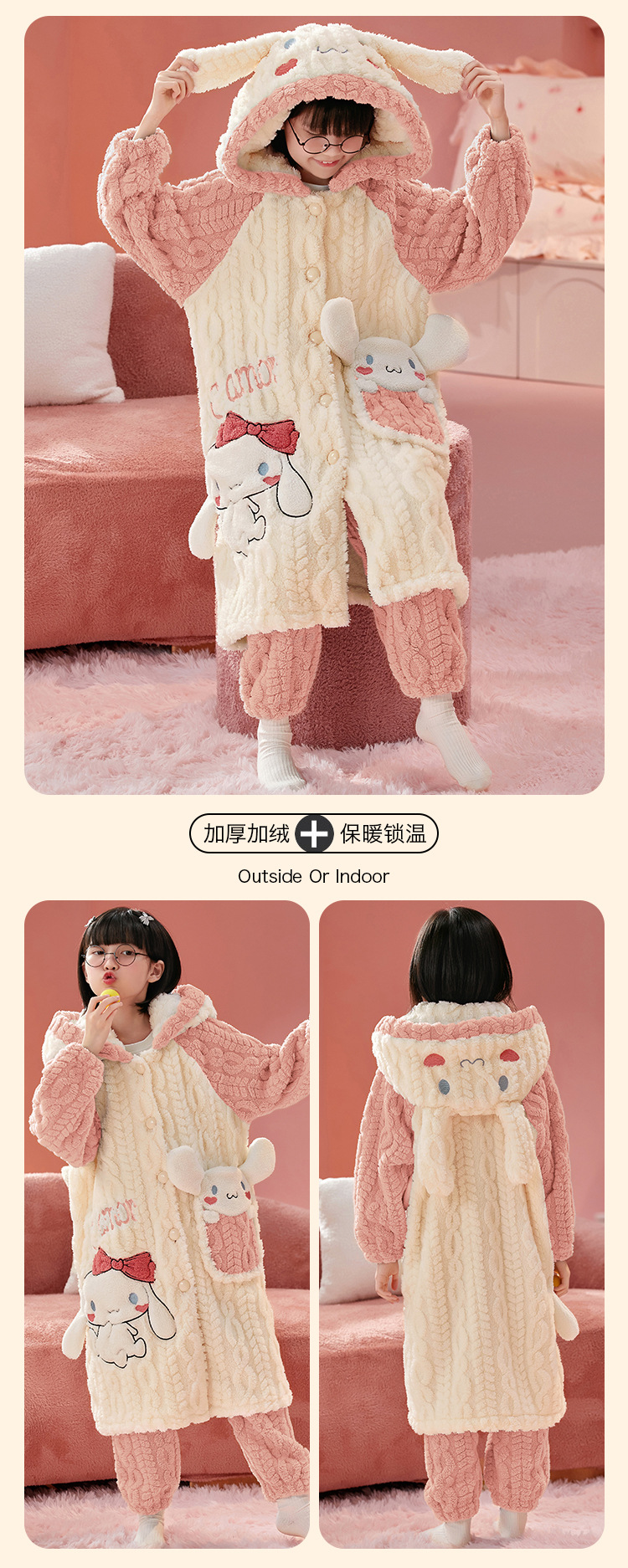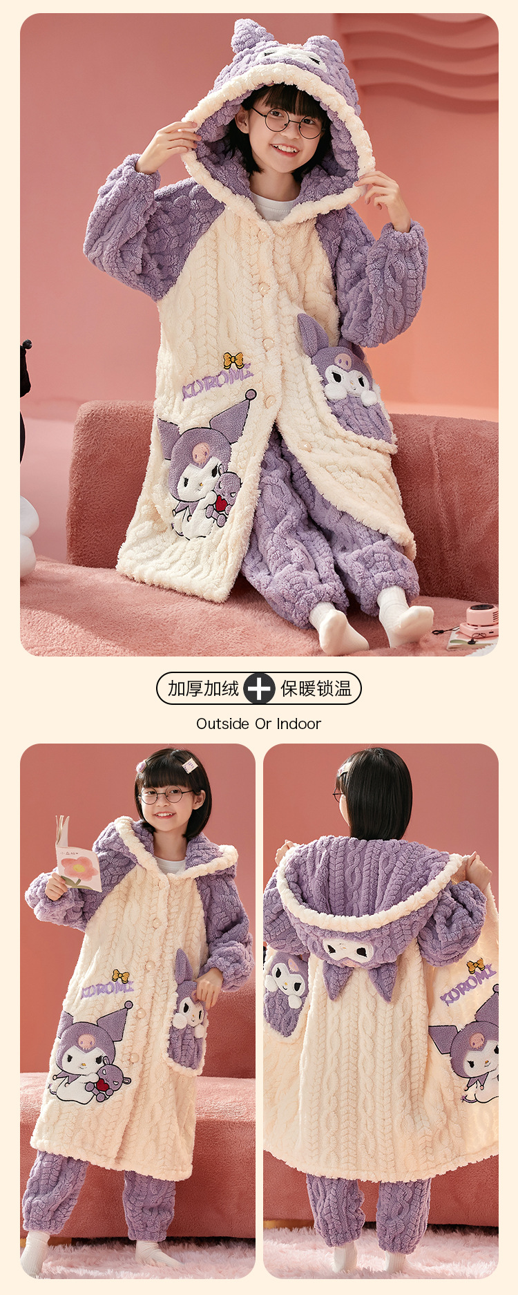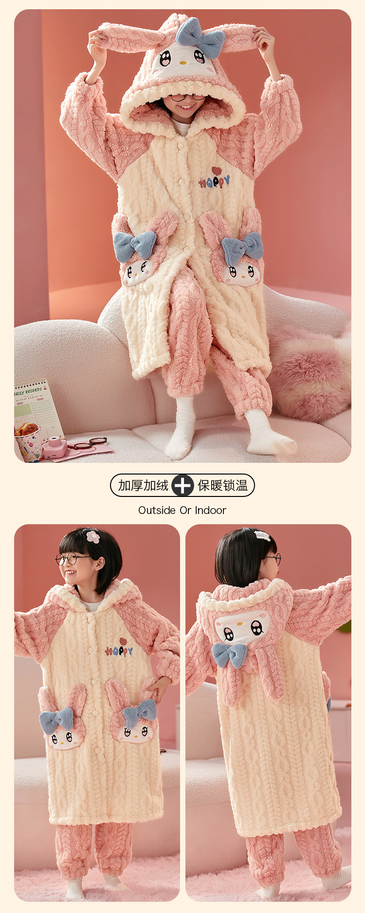 2024 년 새 소녀 잠옷 가을과 겨울 기모 두꺼운 산호 양털 어린이 잠옷 긴 소녀 세트 겨울 스타일
