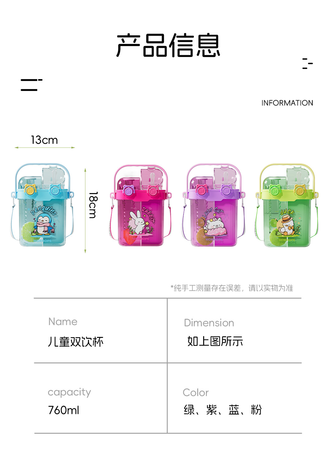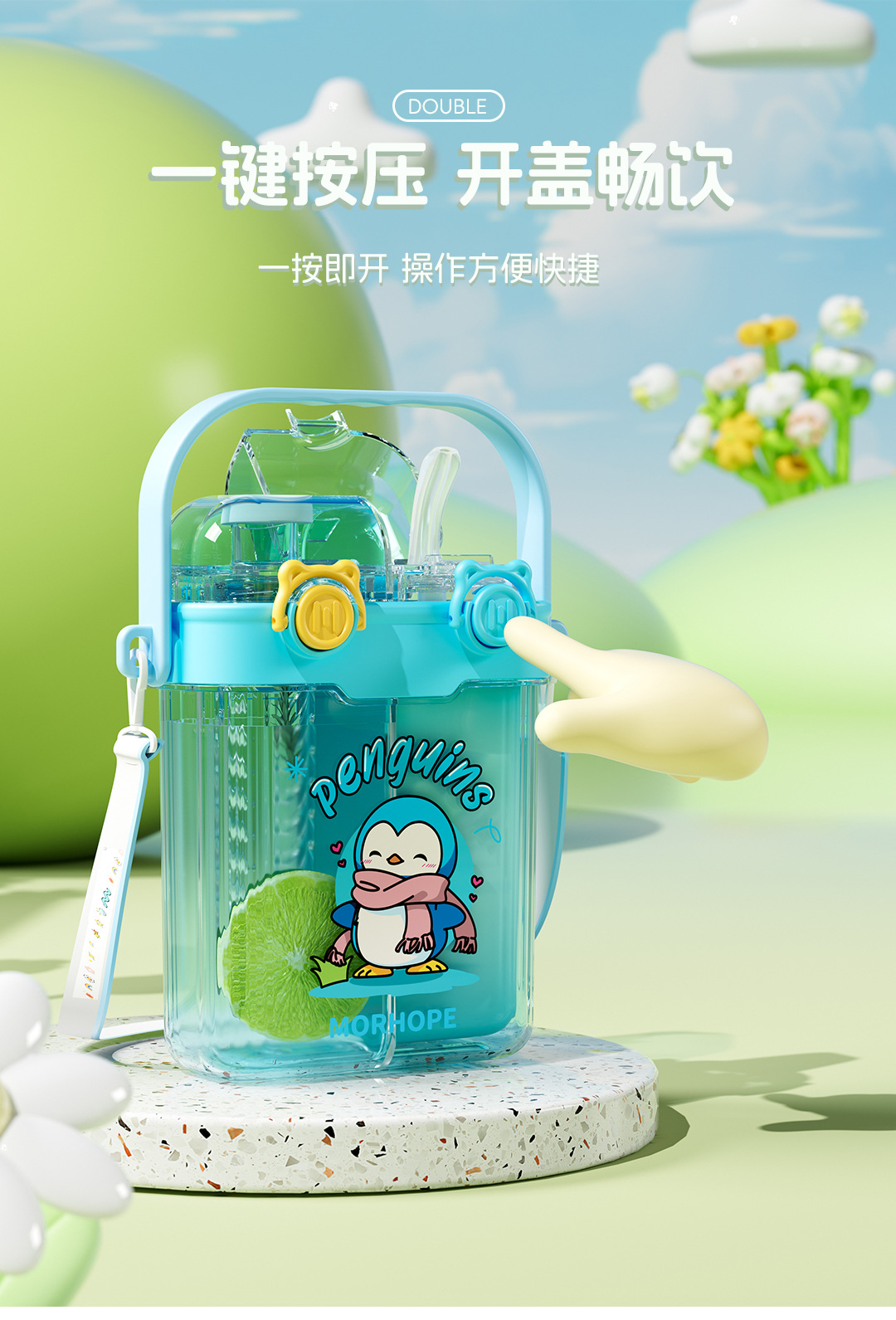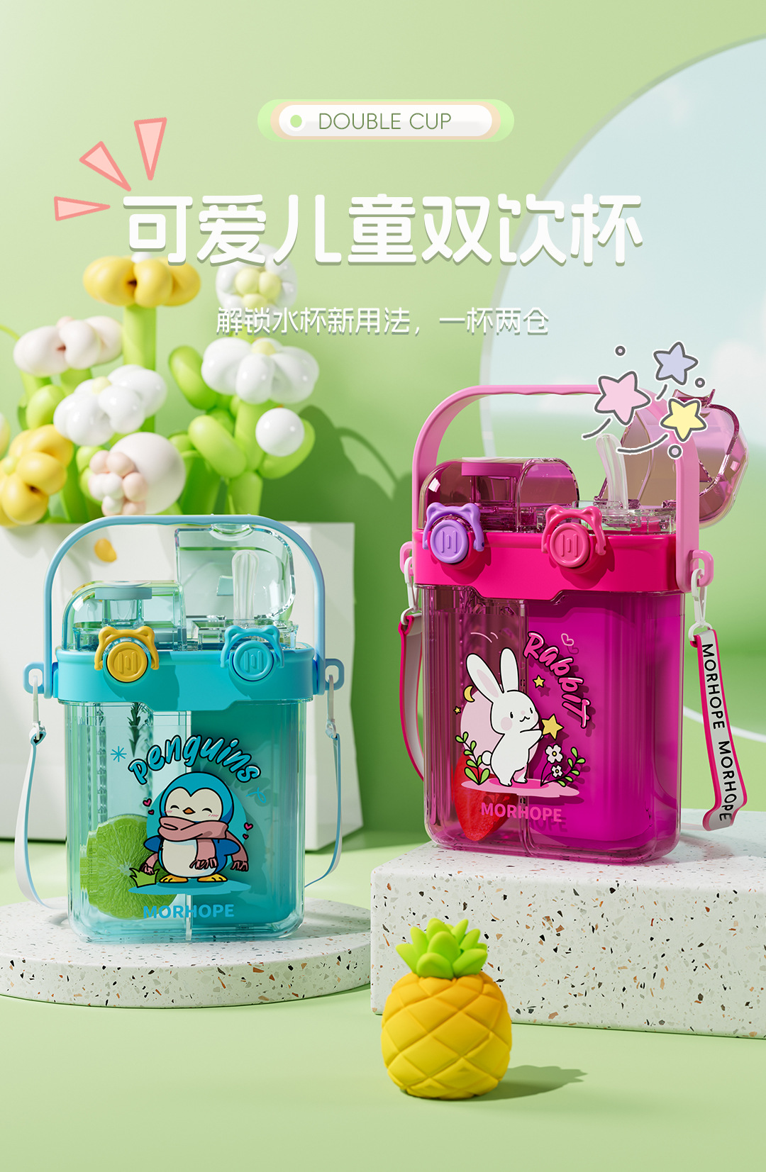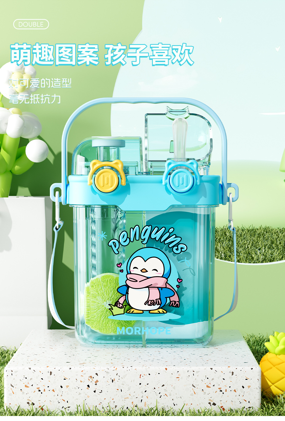 초등학교 학생을위한 공장 도매 더블 음료 어린이 컵 초등학생을위한 휴대용 sippy 컵 광장 주전자 대각선 컵