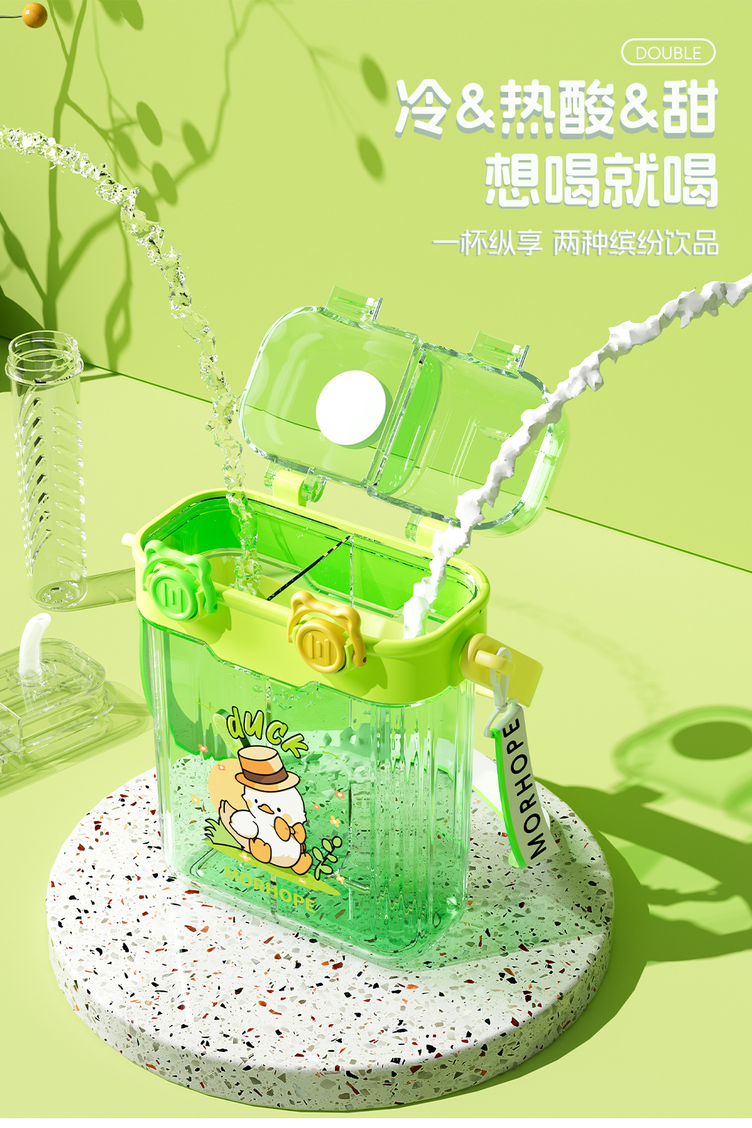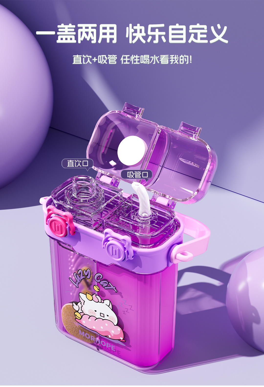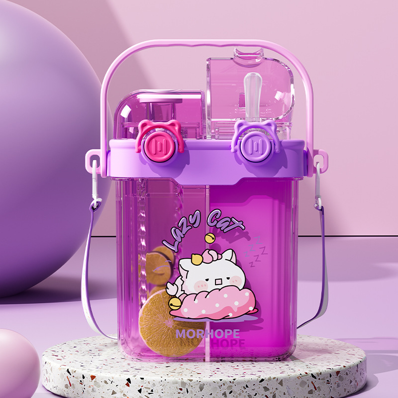 초등학교 학생을위한 공장 도매 더블 음료 어린이 컵 초등학생을위한 휴대용 sippy 컵 광장 주전자 대각선 컵스토어 가기
