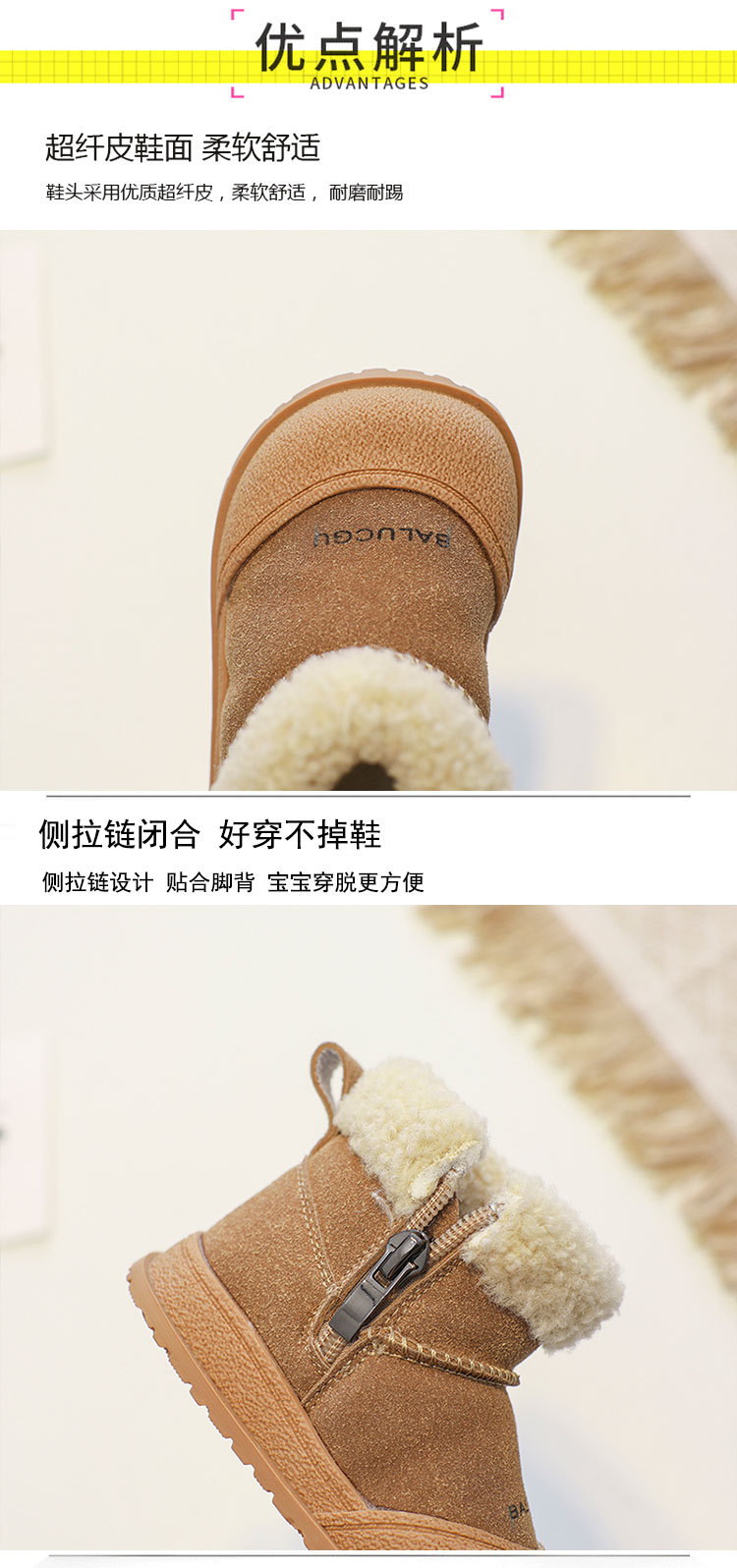 [15-30 야드] 트렌디 한 소년 부드러운 바닥 스노우 부츠 따뜻한 부드러운 바닥 아기 기모 두꺼운 면화 신발스토어 가기