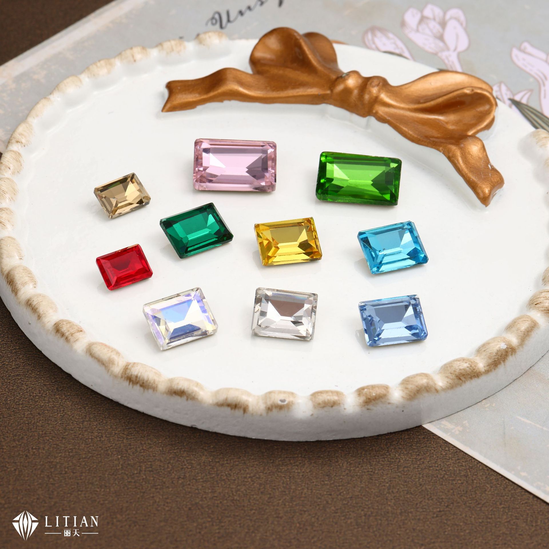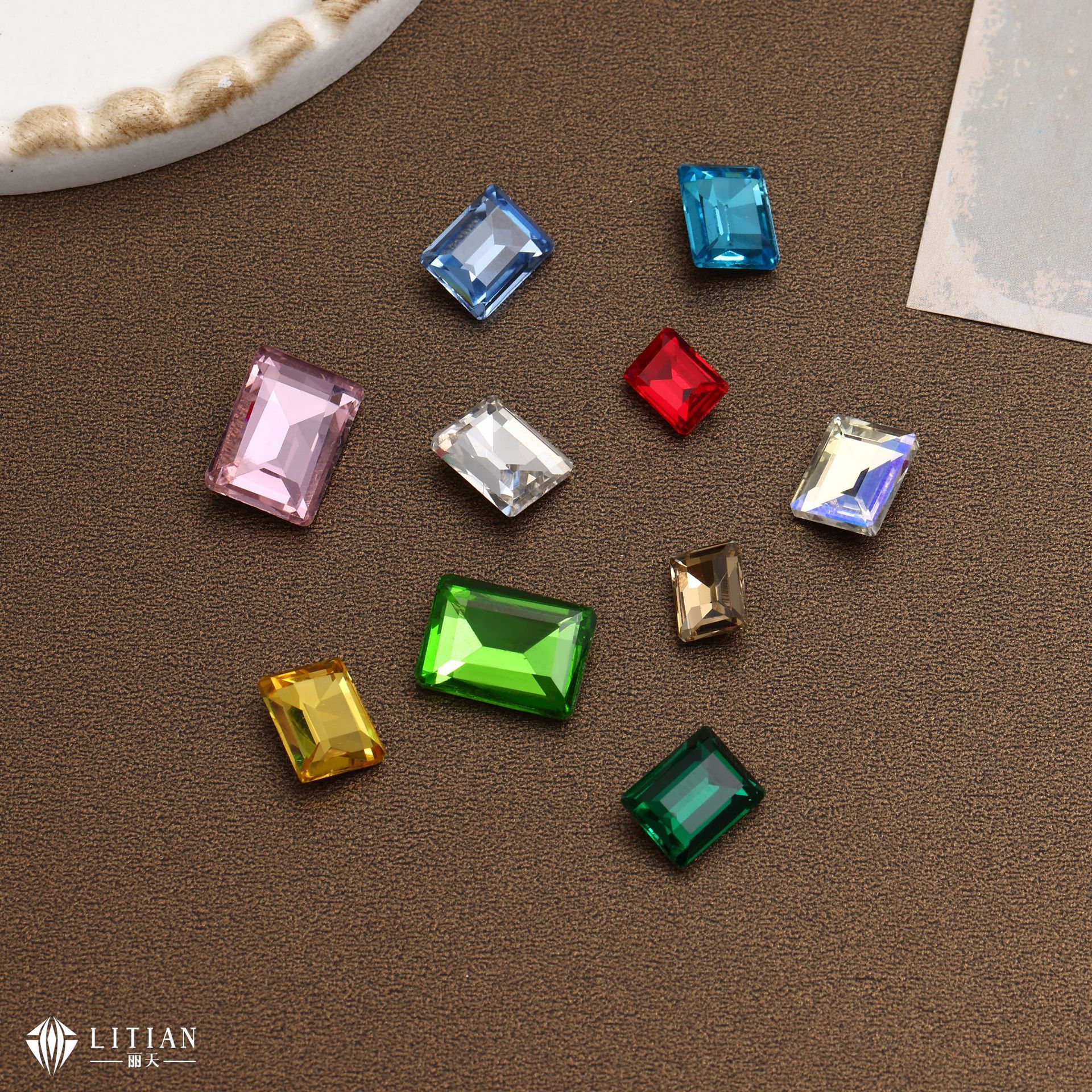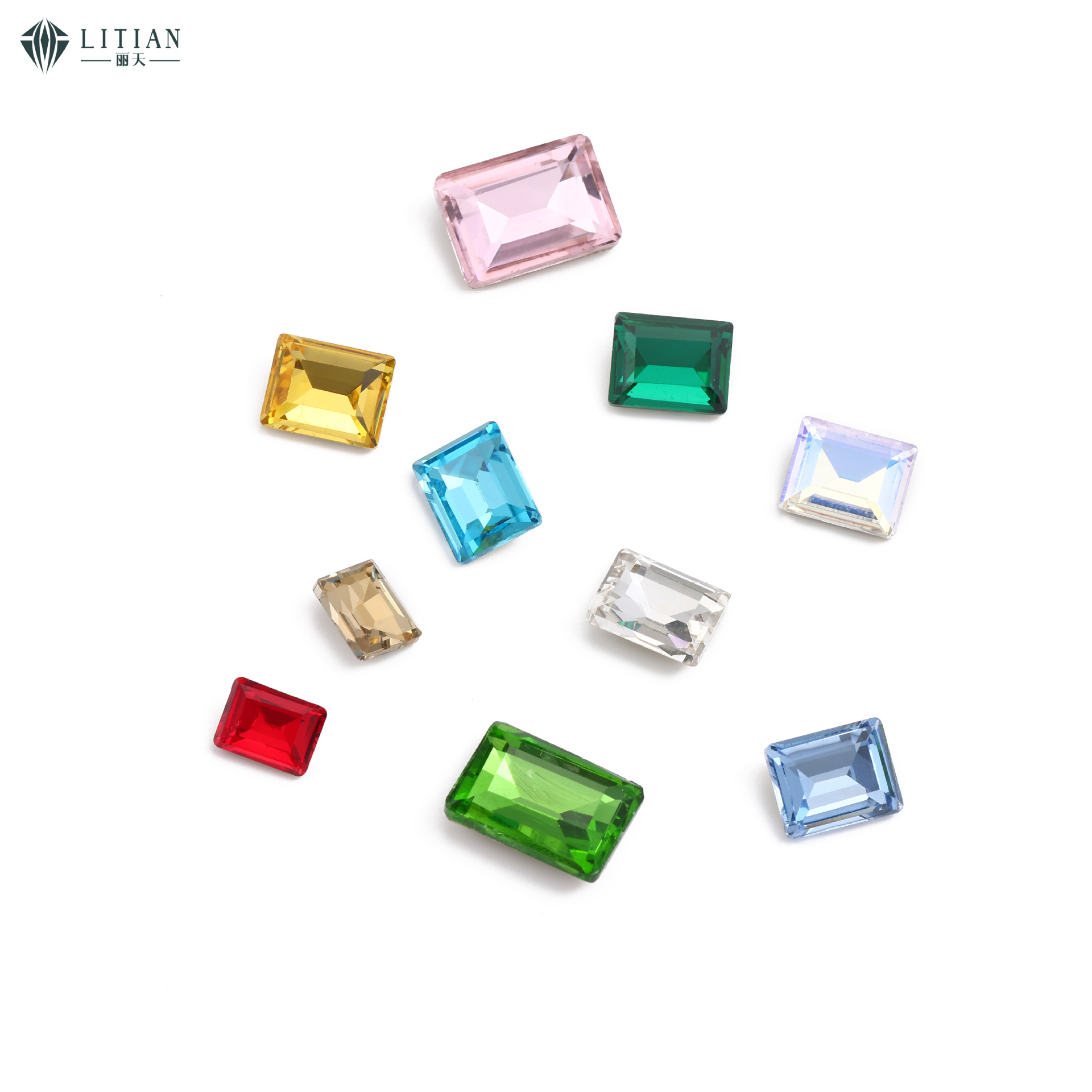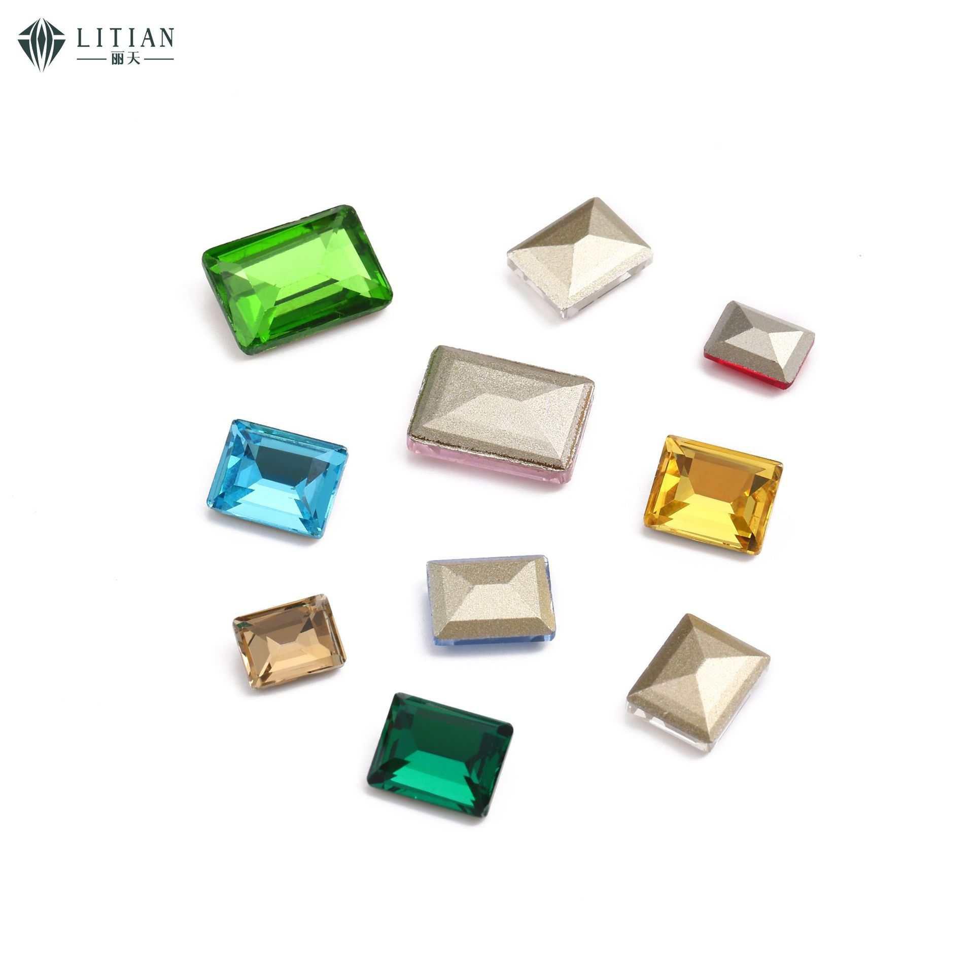 K9 뾰족한 바닥 모양의 유리 크리스탈 설탕 직사각형 웨딩 쥬얼리 크리스탈 의류 액세서리 진공 도금 바닥 크리스탈 네일 드릴스토어 가기