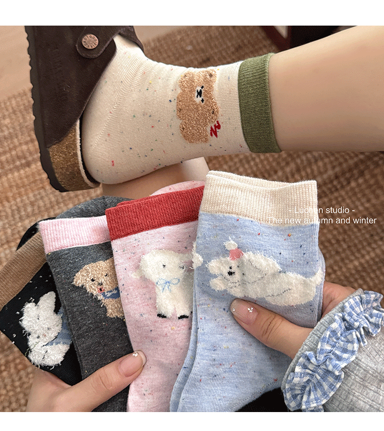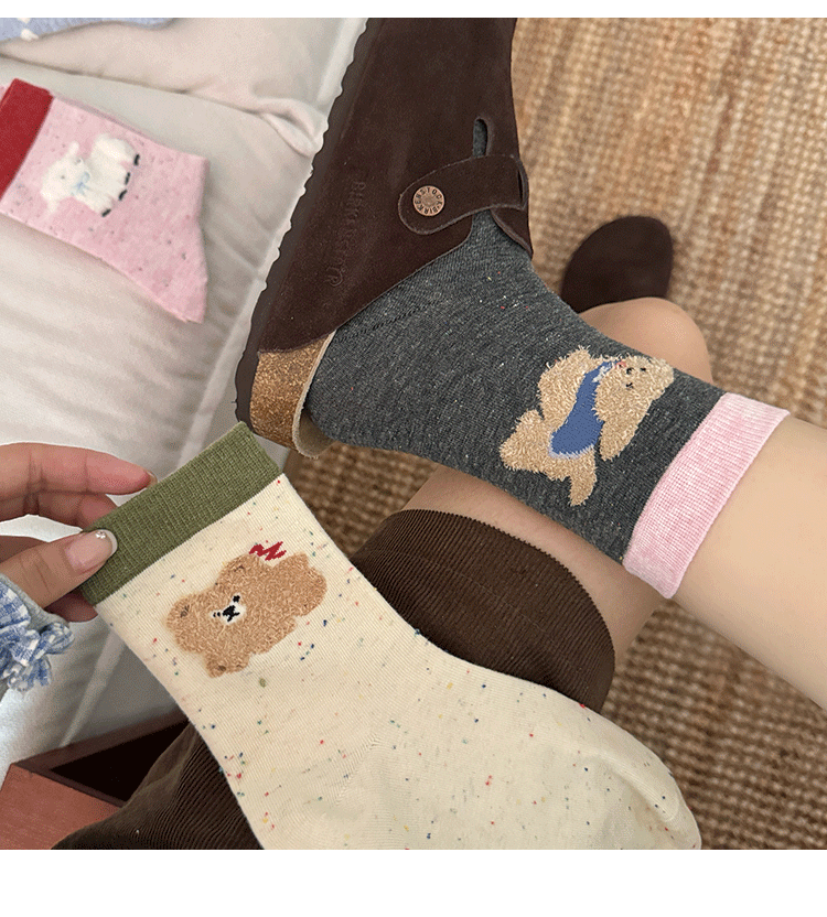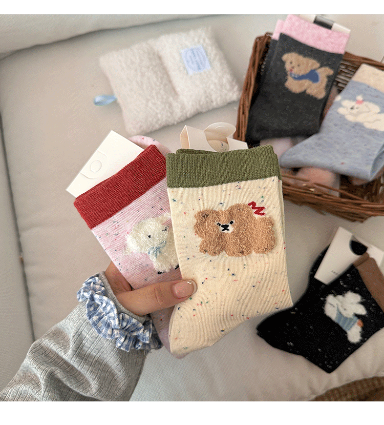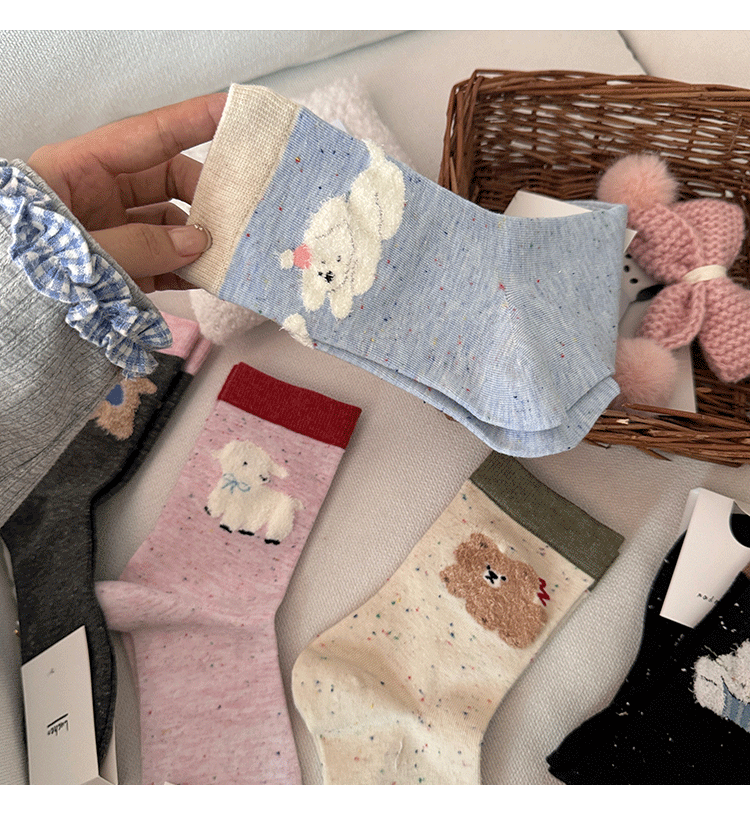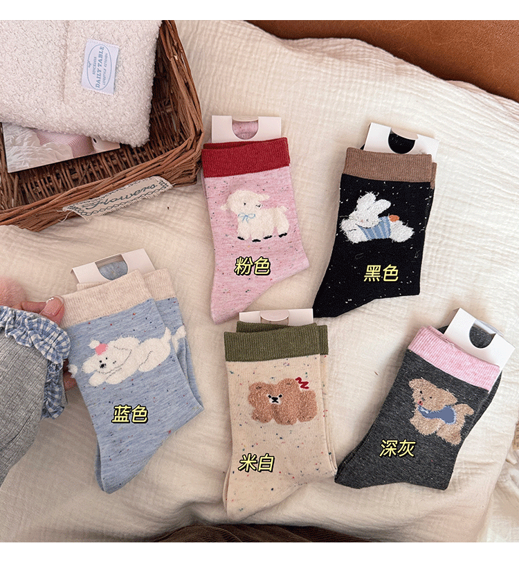 컬러 포인트 동물원 "몰려 만화 뼈없는 양말 어린이 양말 가을과 겨울 대비 색상 Luo Kou 포인트 원사 여성용 양말