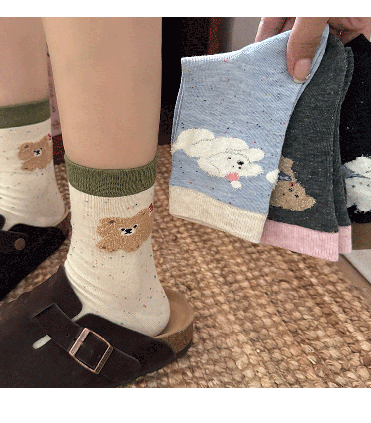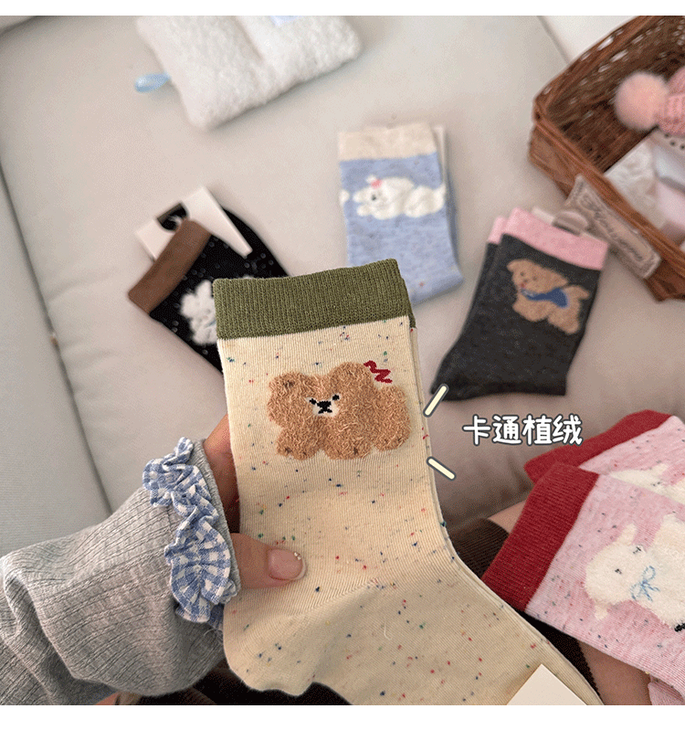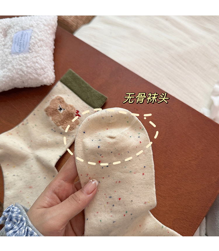 컬러 포인트 동물원 "몰려 만화 뼈없는 양말 어린이 양말 가을과 겨울 대비 색상 Luo Kou 포인트 원사 여성용 양말스토어 가기