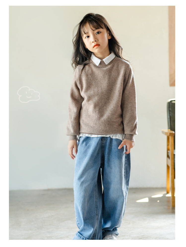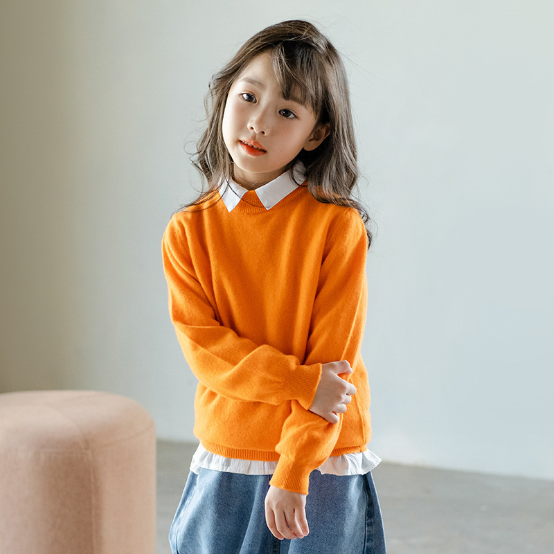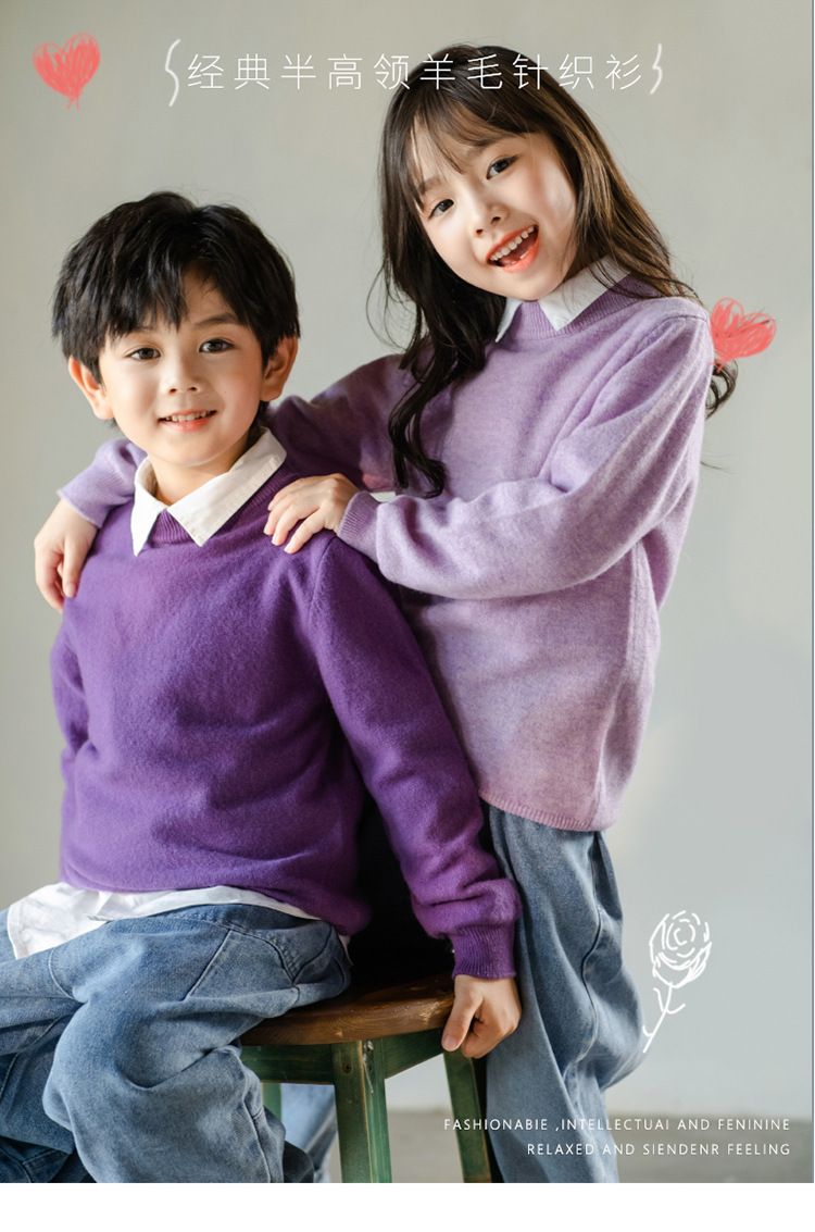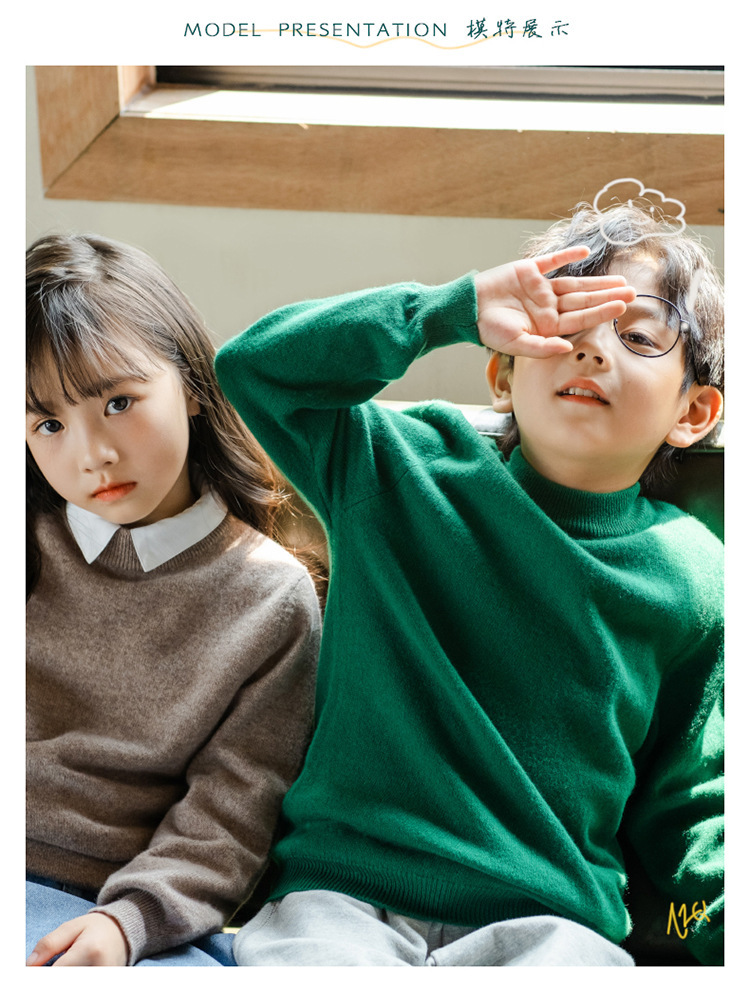 풀 울 스웨터 가을과 겨울 어린이 캐시미어 니트 베이스 크루 넥 소년과 소녀 같은 내부 큰 어린이 스웨터 트렌디 도매스토어 가기
