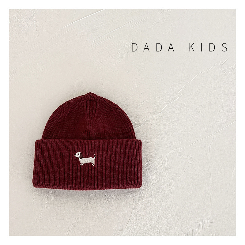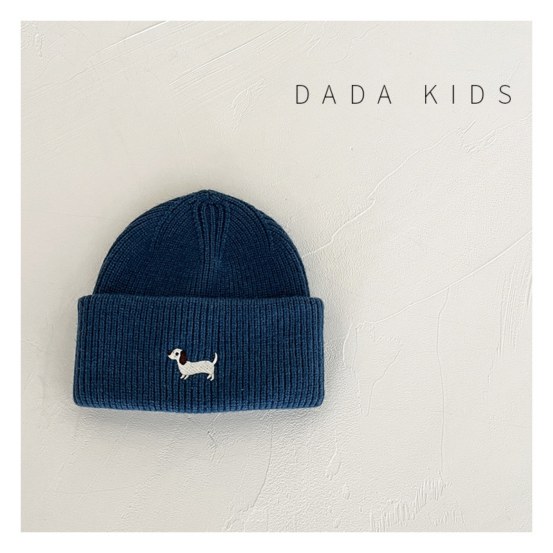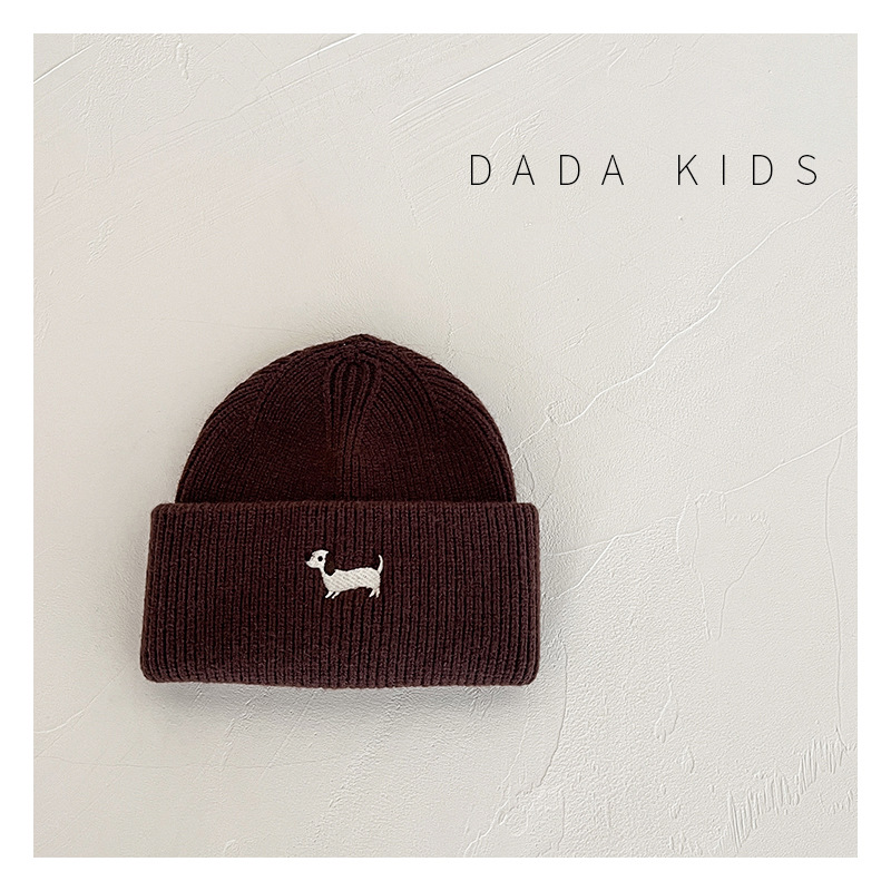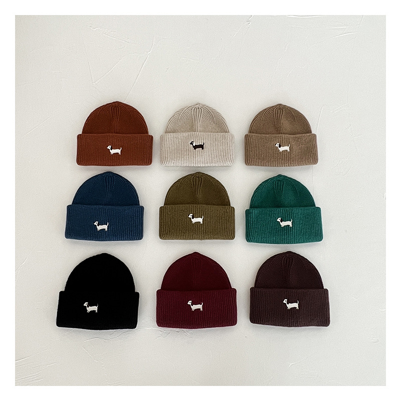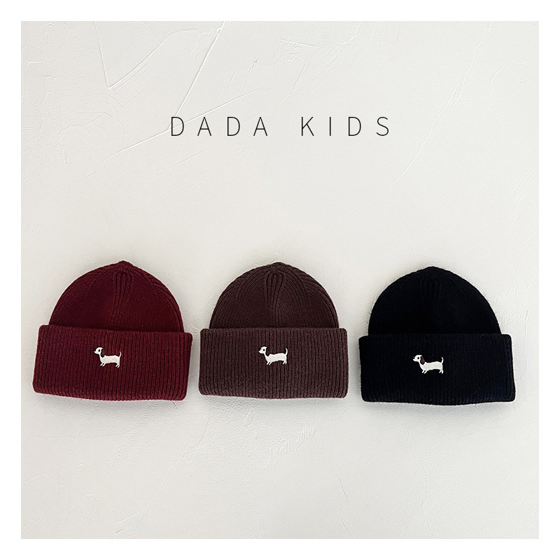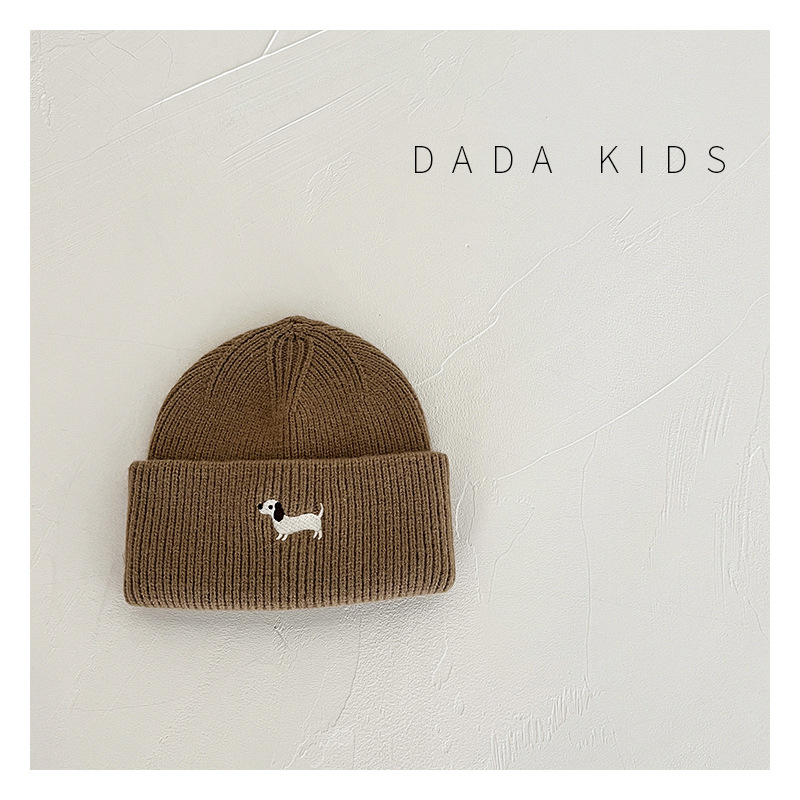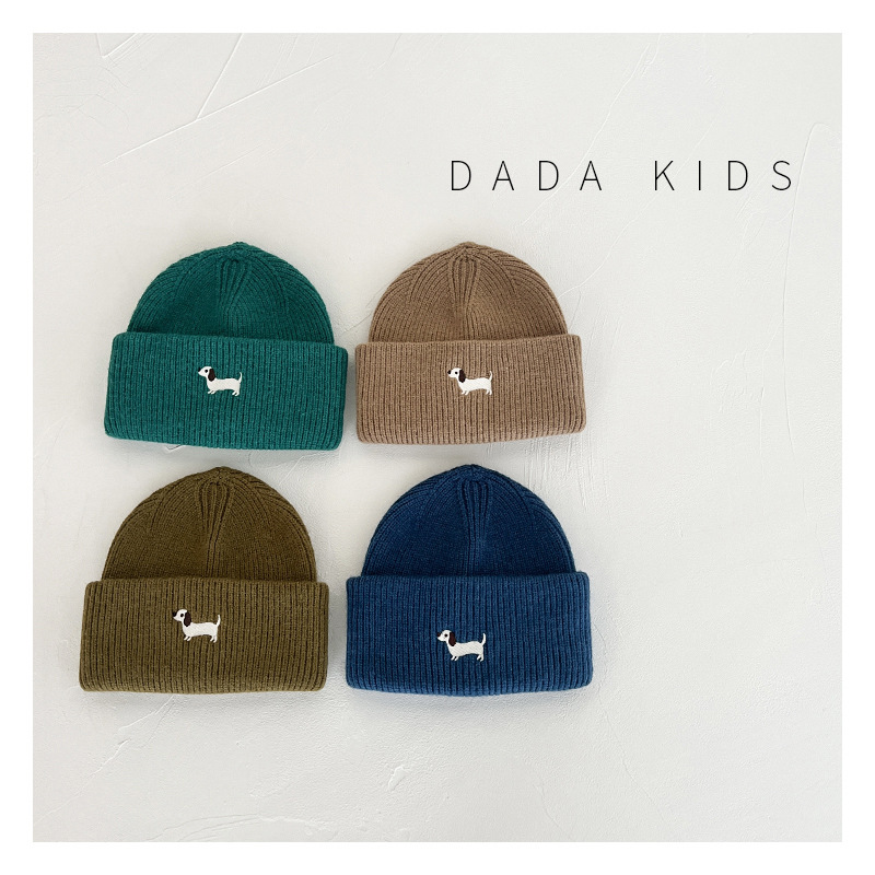 어린이 양모 모자 Ins 한국 스타일 자수 개 귀여운 서양식 캐주얼 따뜻한 풀오버 니트 모자 소년 소녀