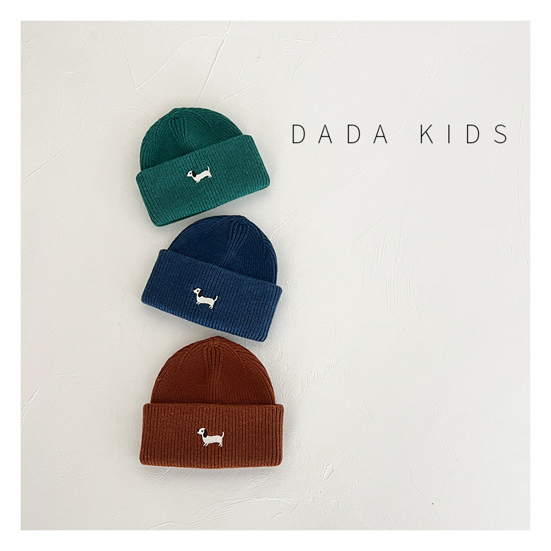 어린이 양모 모자 Ins 한국 스타일 자수 개 귀여운 서양식 캐주얼 따뜻한 풀오버 니트 모자 소년 소녀스토어 가기
