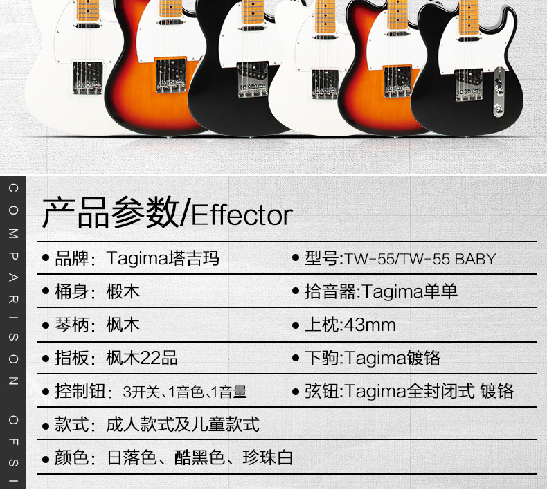 Tajima Tagima 전문 일렉트릭 기타 성인 어린이 TG530 T-635 TW-55 초보자 입장스토어 가기