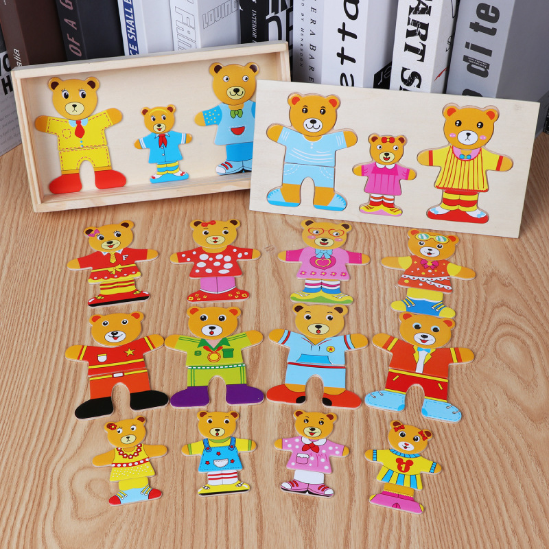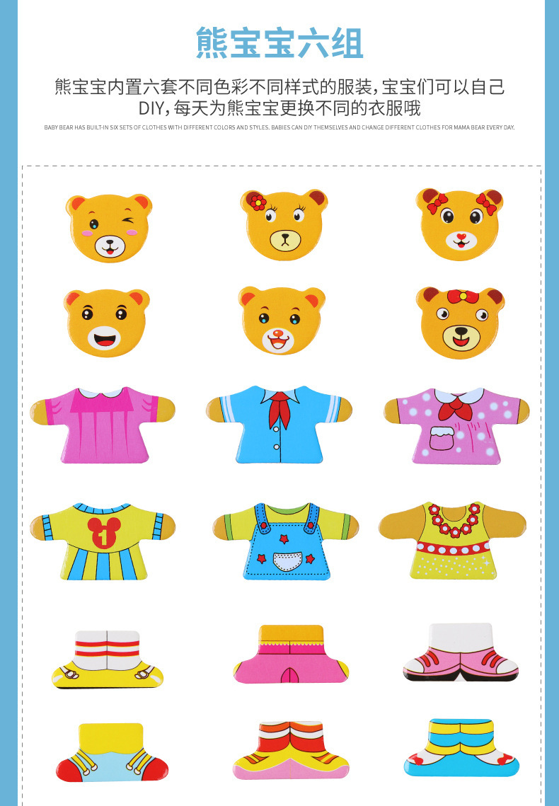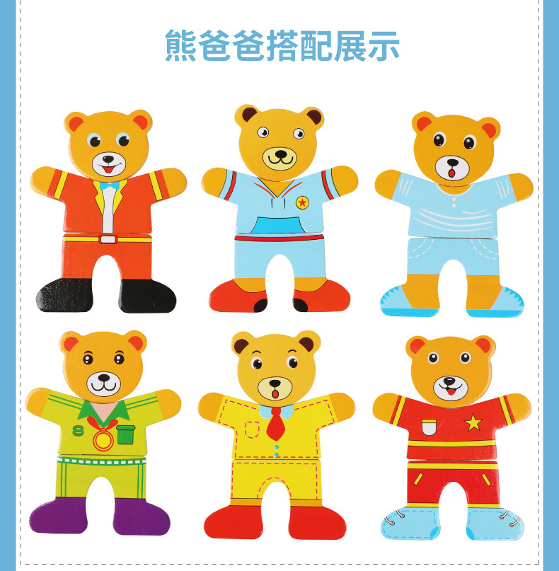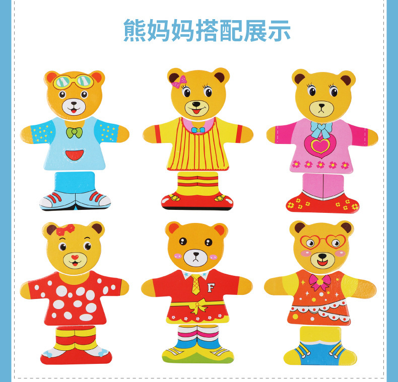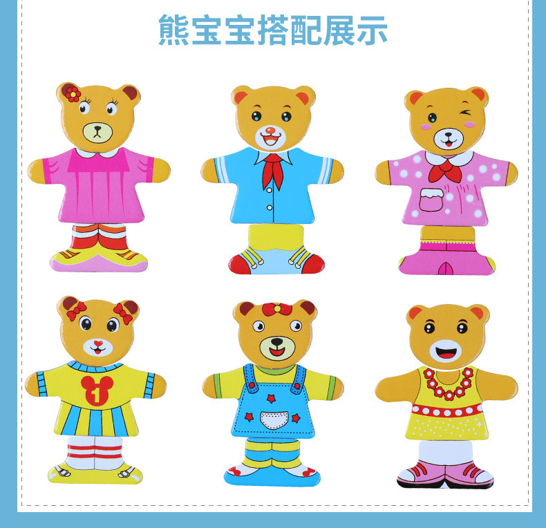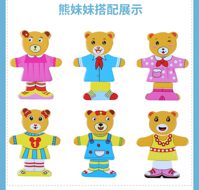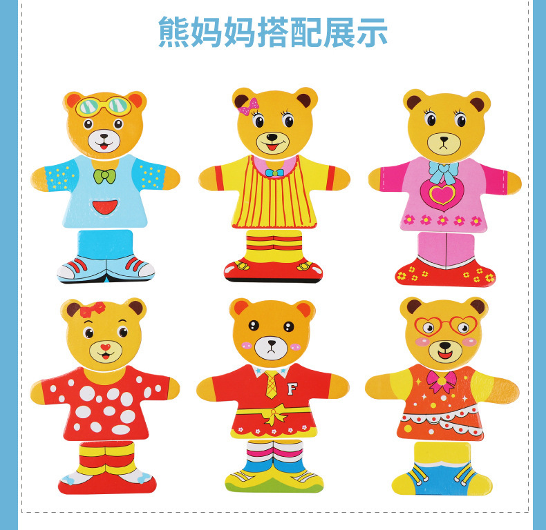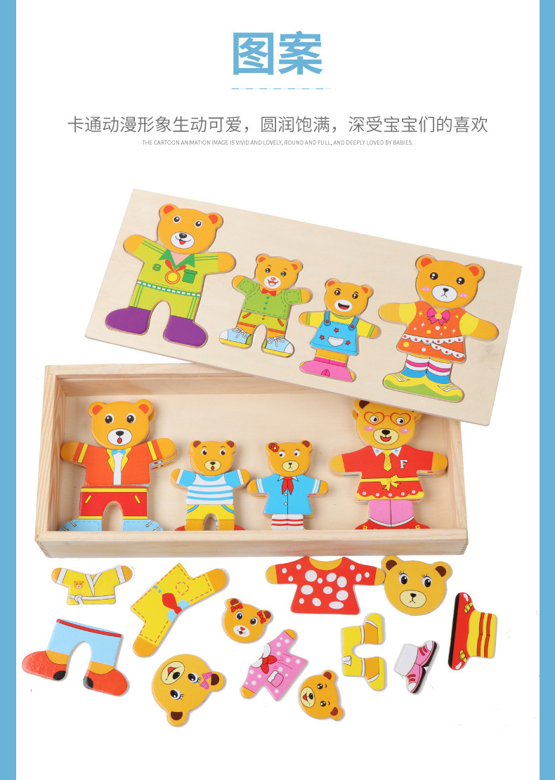 소녀 곰 변경 옷 건물 블록 아이들의 조기 교육 나무 퍼즐 드레싱 게임 아기 나무 교육 건물 블록 장난감스토어 가기